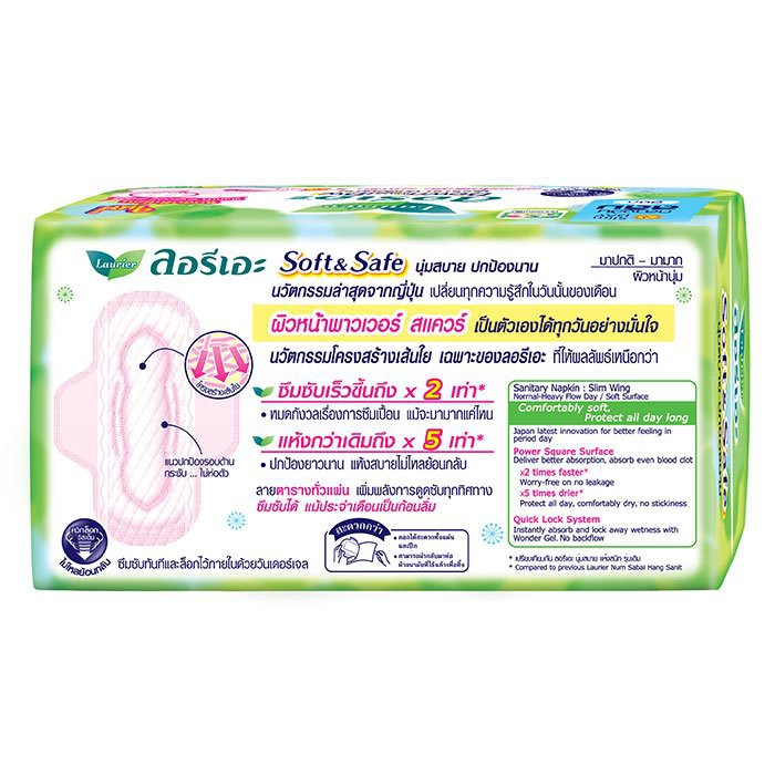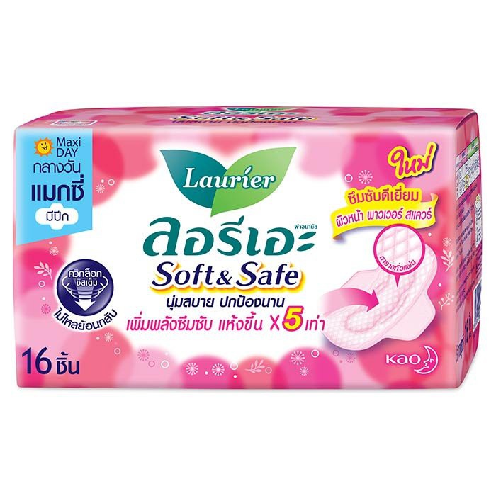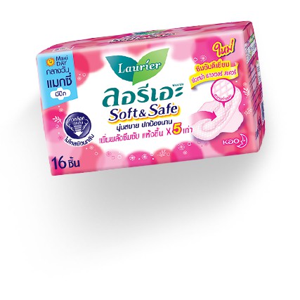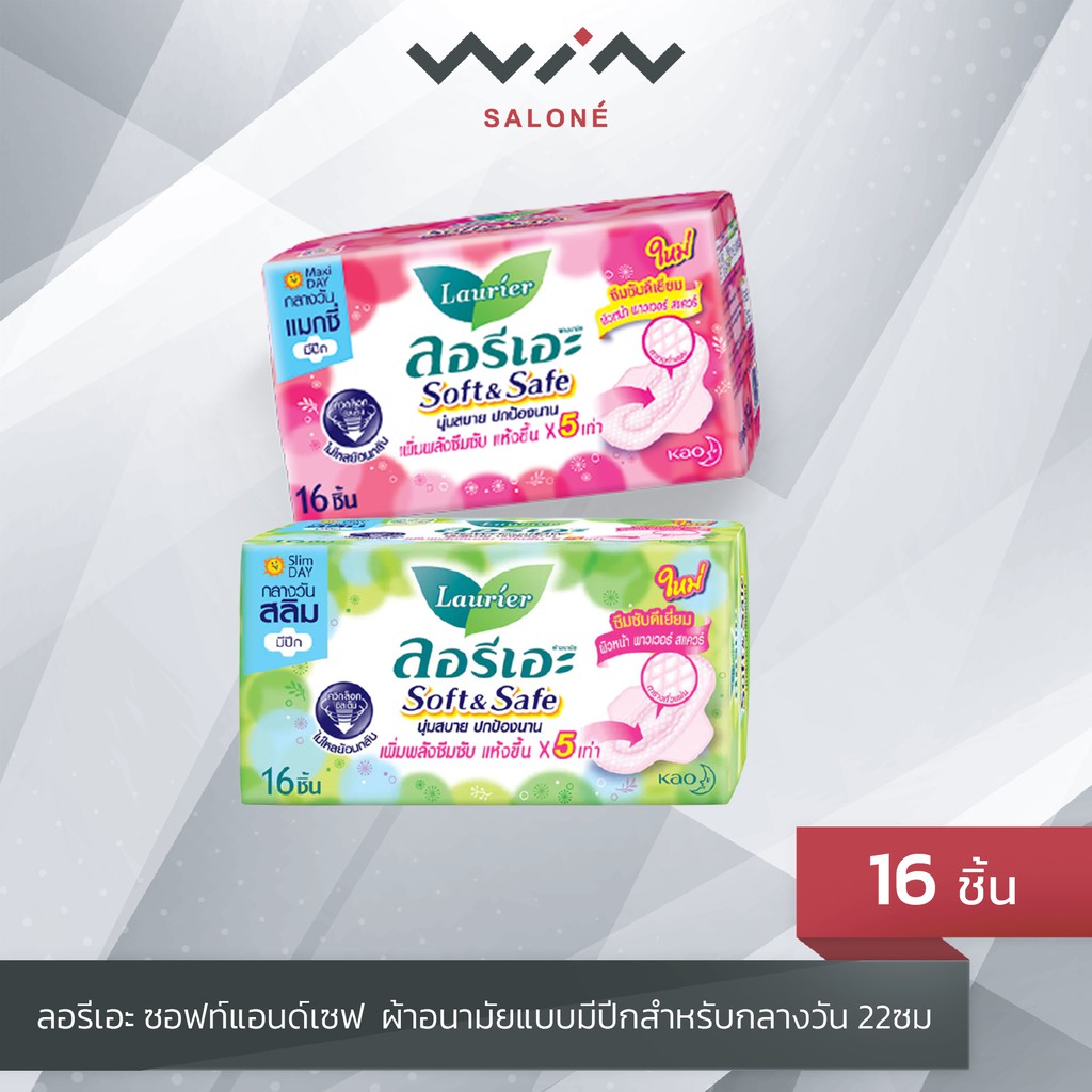ลอรีเอะ ซอฟท์แอนด์เซฟ Laurier Soft and Safe ผ้าอนามัย แบบมีปีก สำหรับกลางวัน 22ซม. 16 ชิ้น