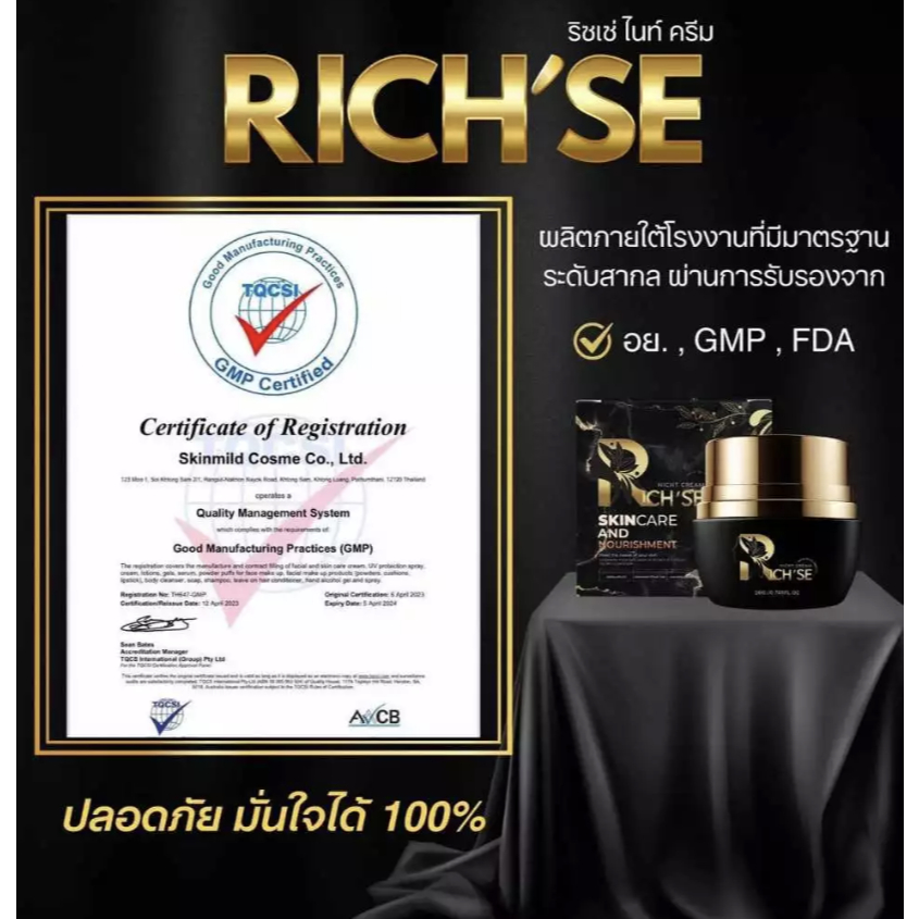 [พร้อมส่ง] Rich'se Night cream ผลิตภัณฑ์ ริซเซ ่ ไนท์ครีม ครีมริซเซ่ ผิวหน้าขาวใส เรียบเนียน