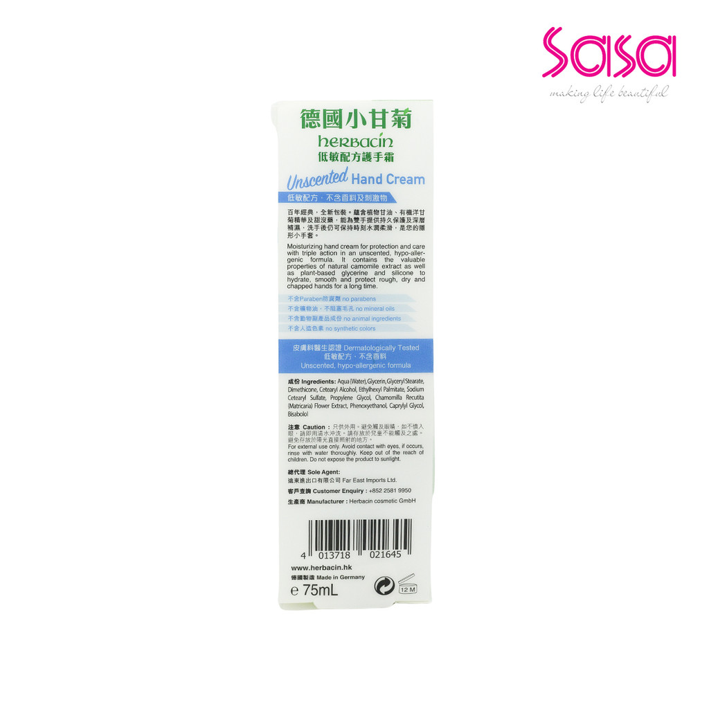 Herbacin Unscented Hand Cream Tube (75ml)
