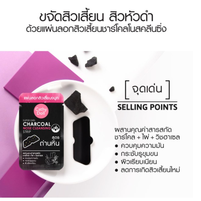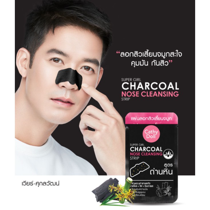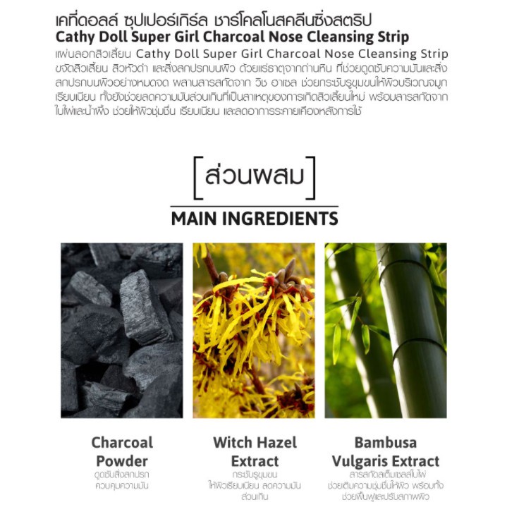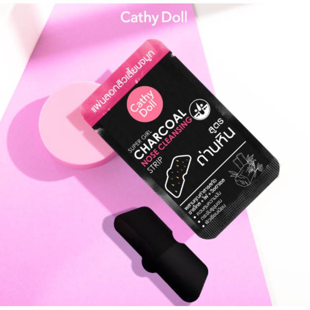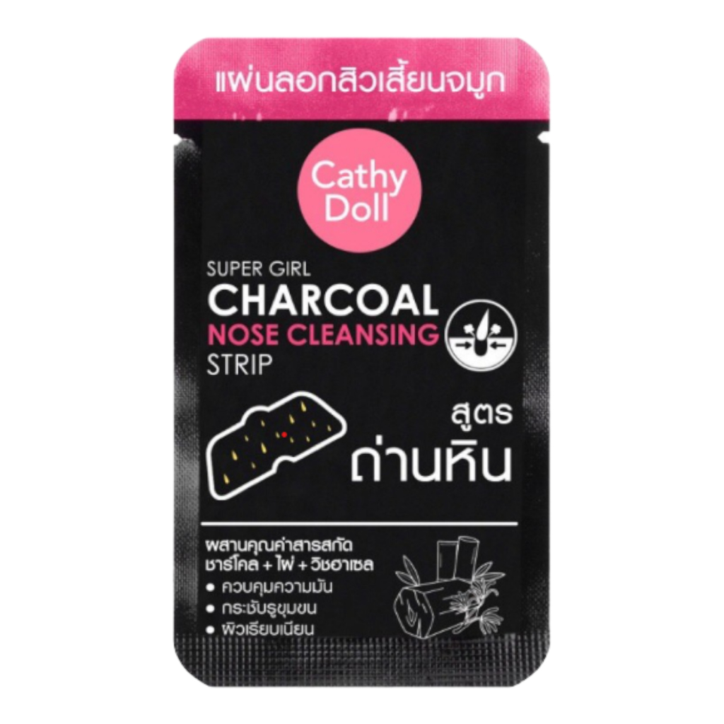 (ซอง) Cathy Doll Super Girl Charcoal Nose Cleansing Strip เคที่ดอลล์ แผ่นลอกสิวหัวดํา ลอกสิวจมูก มาร์คลอกสิว