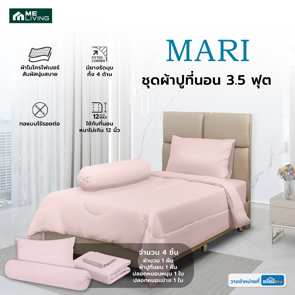 ME LIVING ชุดผ้าปูที่นอน 3.5 ฟุต 4 ชิ้น MARI สีชมพู จัดส่งโดย HomePro