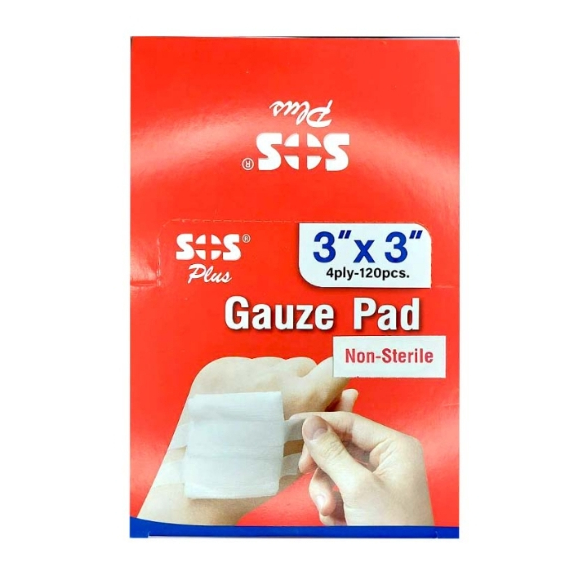 กล่องแดง SOS Plus Gauze Pad Non-Sterile ผ้าก็อซใยสังเคราะห์ ขนาด 2x2/3x3 นิ้ว จำนวน 1 กล่อง 12 ซอง