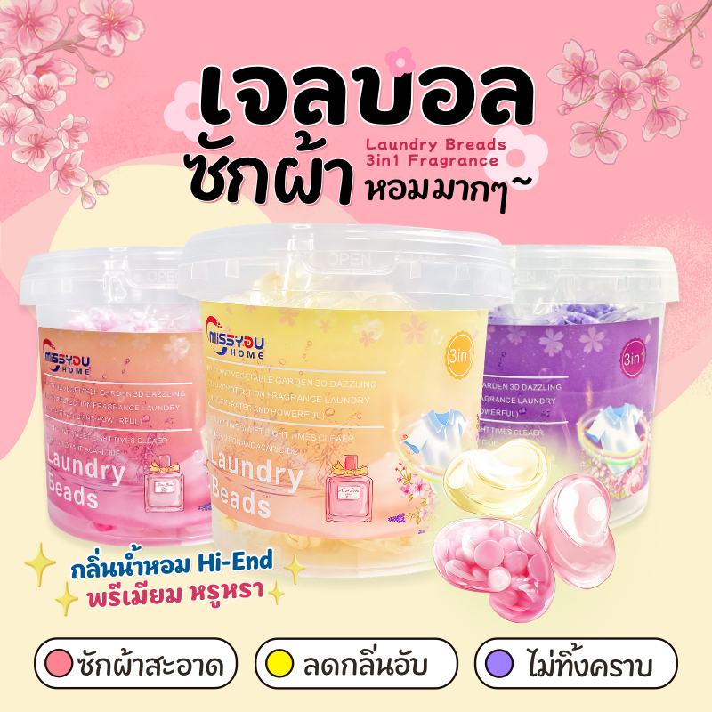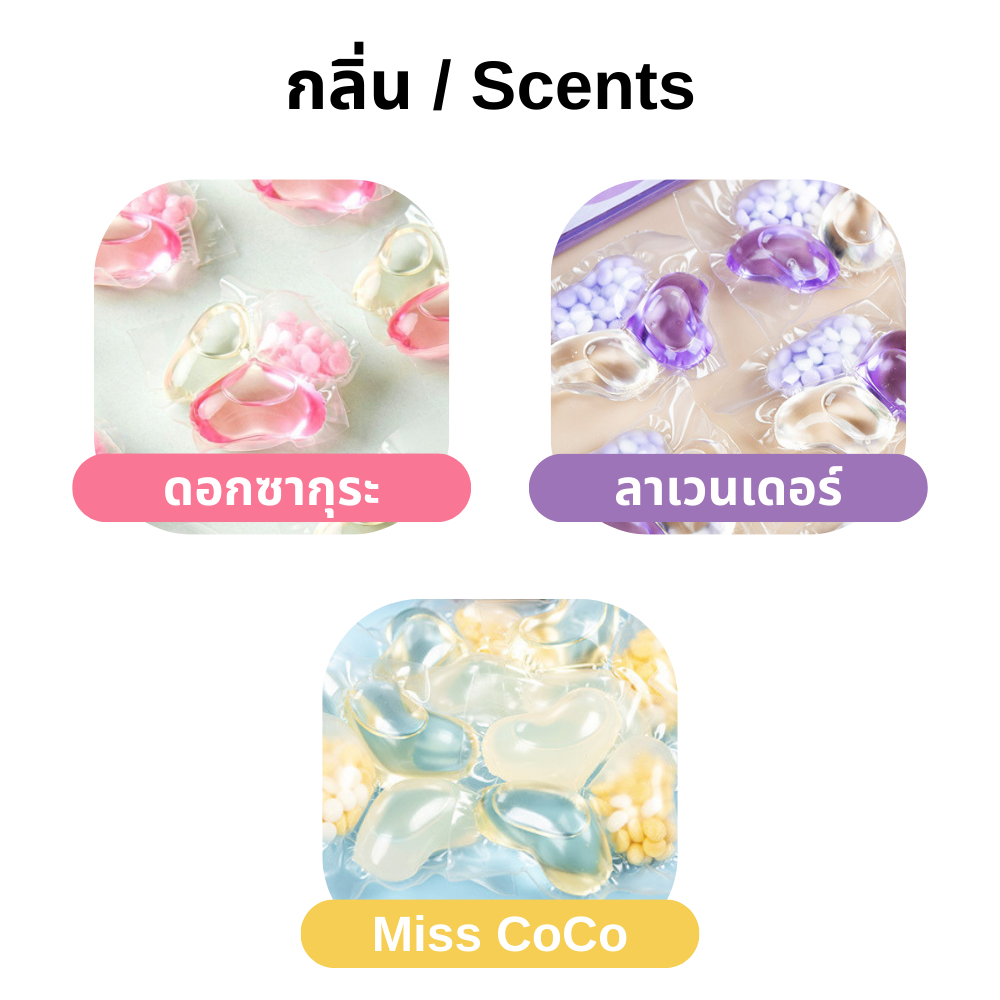 เจลบอลซักผ้า แคปซูลซักผ้า กลิ่นหอ ม 30/60 เม็ด น้ำยาซักผ้า พร้อมเม็ดน้ำหอม น้ำยาปรับผ้านุ่ม