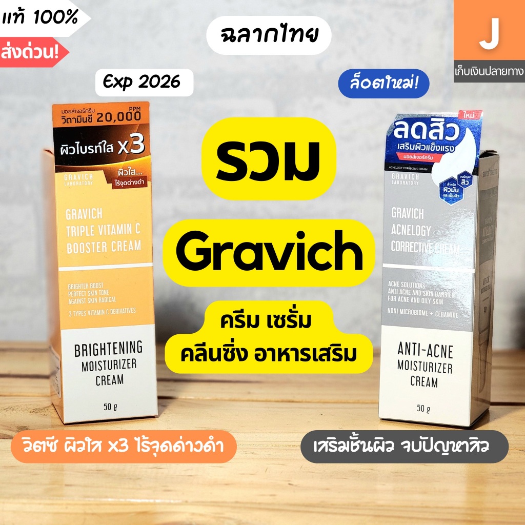 [ของแท้] Gravich กราวิช ครีม เซรั่ม Triple Vitamin C Acnelogy cream serum cleansing 50 g สิว