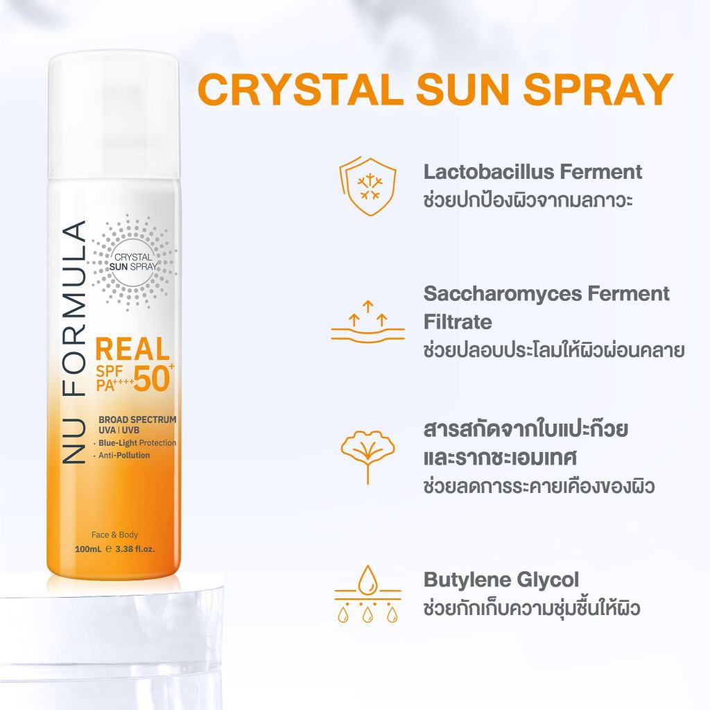 ถูก/แท้/มีไลฟ์ สเปรย์กันแดด Nu Formula Crystal Sun Spray Real SPF50+ PA++++ สเปรย์กันแดดคริสตัล บางเบา สบายผิว กันน้ำ