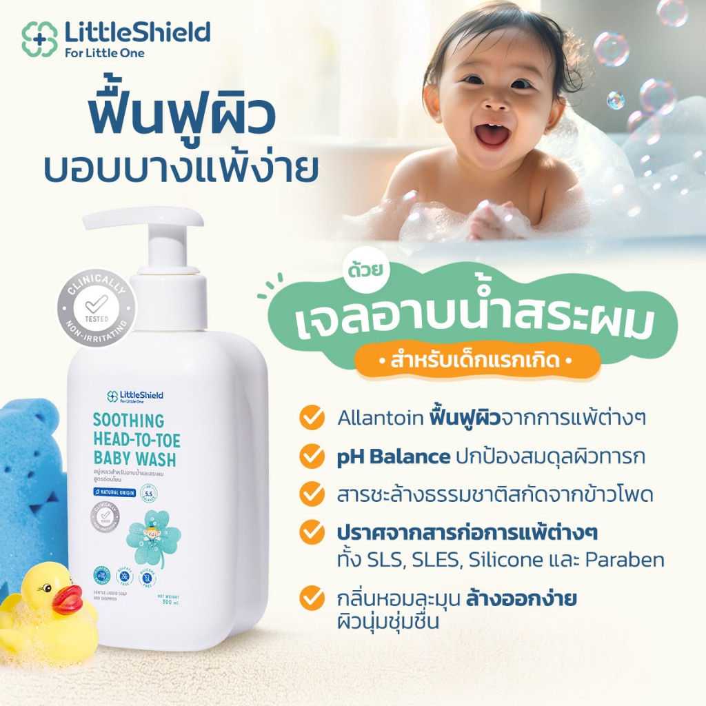 **2 ขวด** สบู่เหลวอาบน้ำและสระผม สำหรับทารก - Little Shield: SOOTHING HEAD-TO-TOE BABY WASH