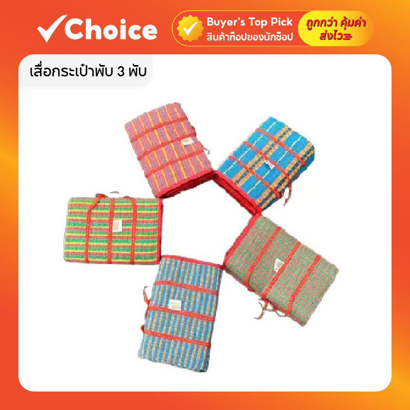 เสื่อกระเป๋าพับ 3 พับ พกพาสะดวก เสื่อปิกนิก ขนาดเล็ก/ใหญ่ ลายสวย สีสันสดใส