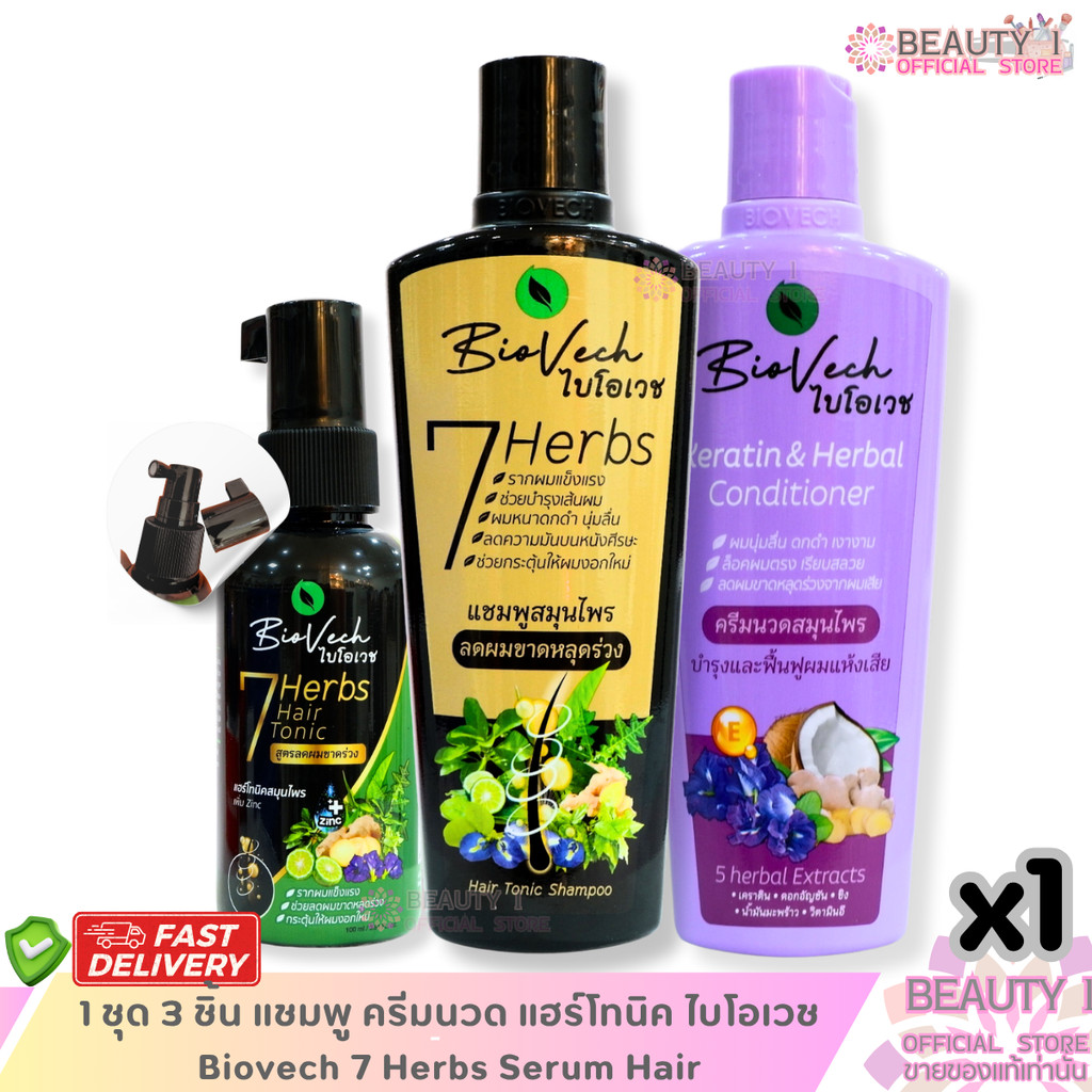 ครบเซต 1 ชุด 3 ชิ้น แชมพูไบโอเวช BioVech สมุนไพรแท้ 100% ครีมนวดไบโอเวช แฮร์โทนิค
