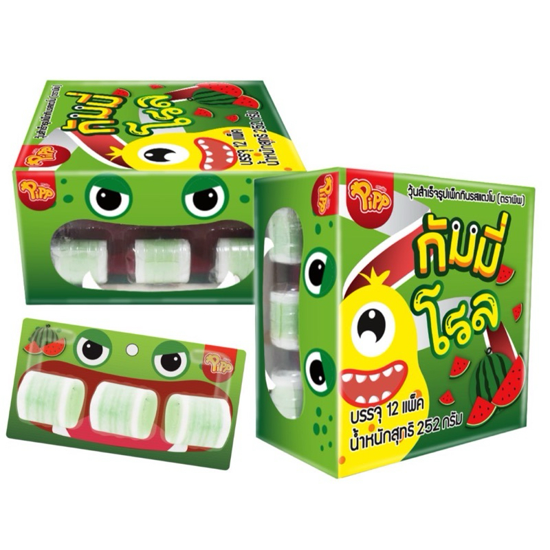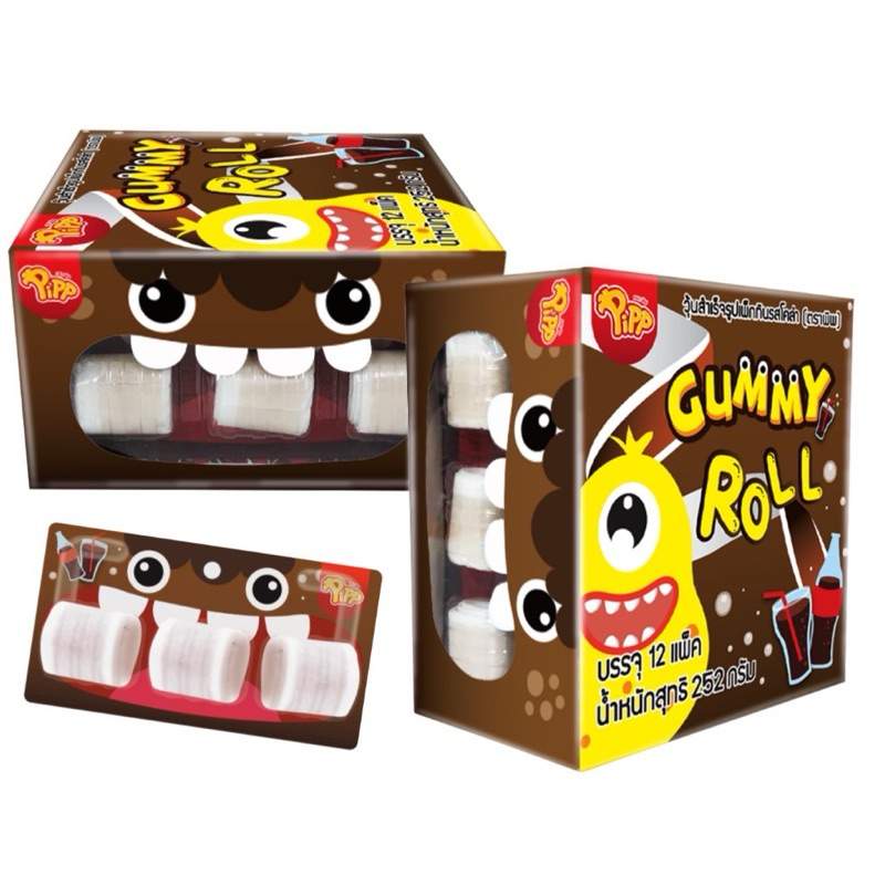 [X1กล่อง12ชิ่น] Pipp Gummy Roll กัมมี่โรล วุ้นสำเร็จรูปเพ็กทิน 4รสชาติ แพ็ก 12 ชิ้น 252g.