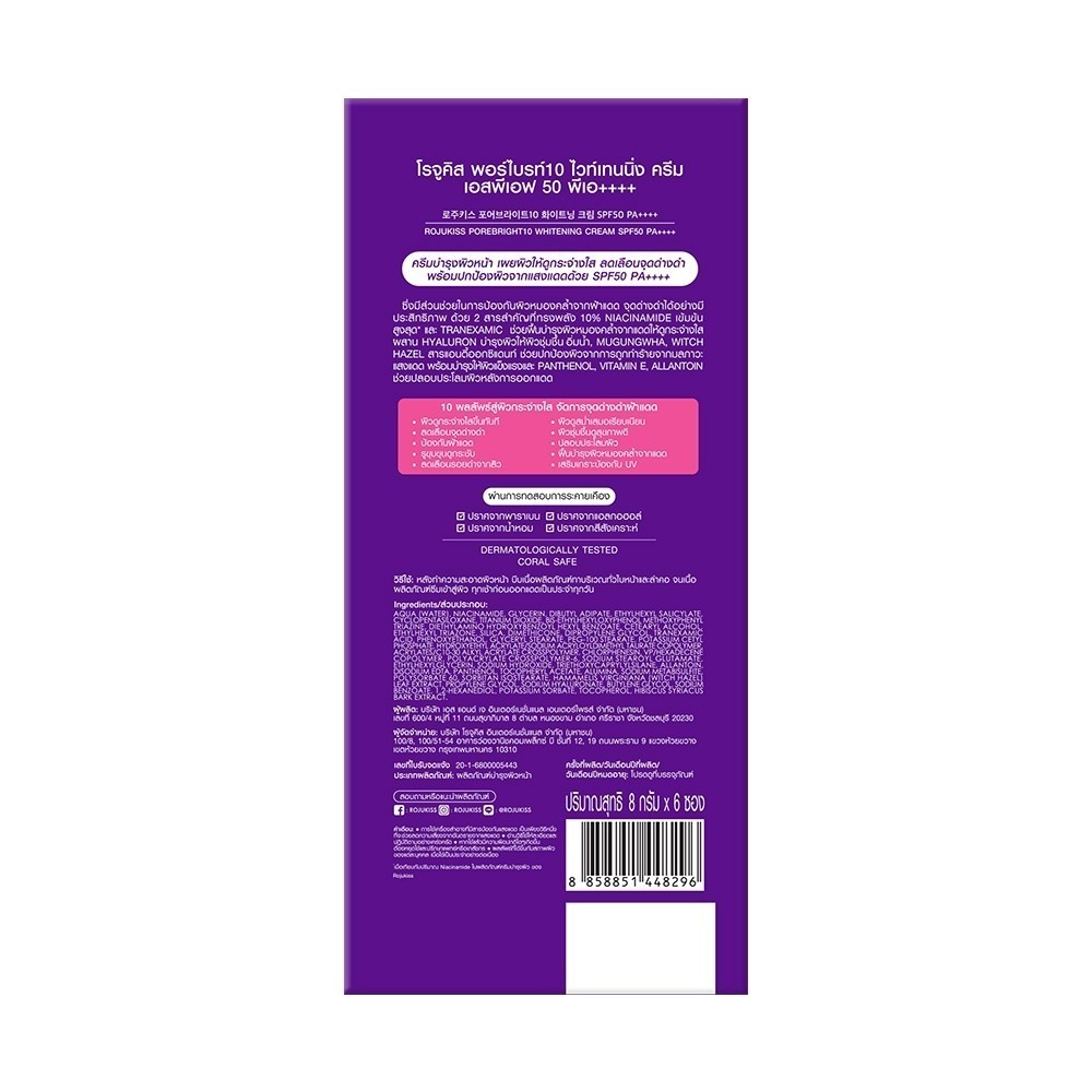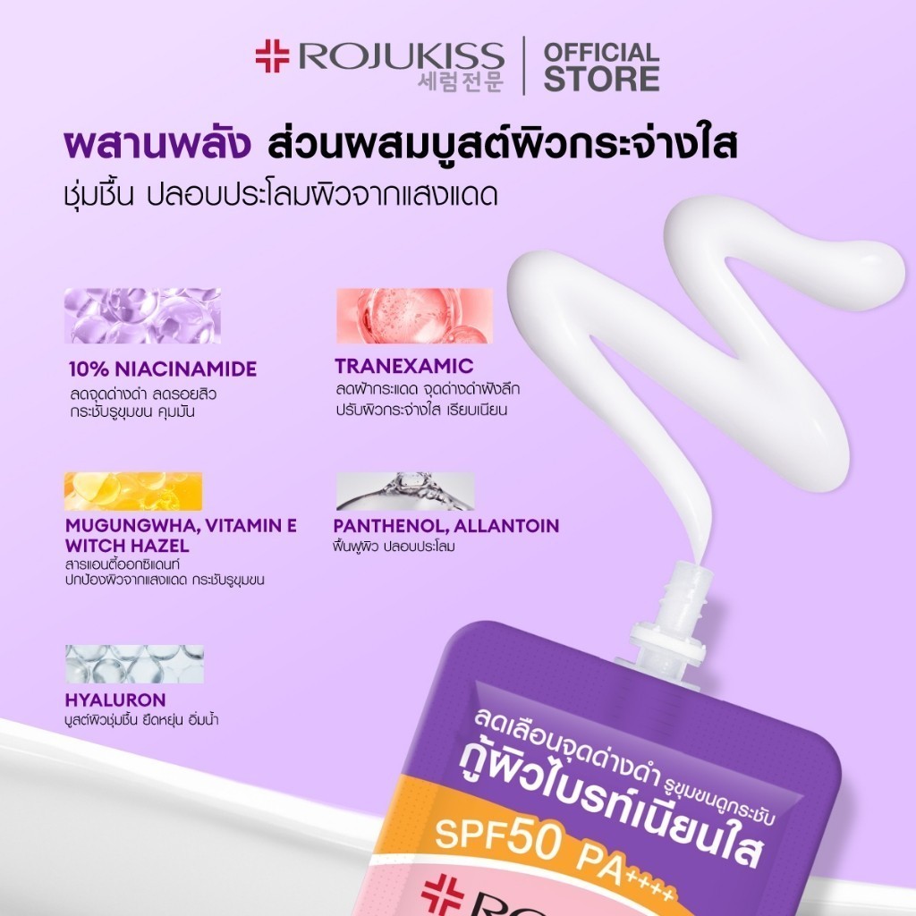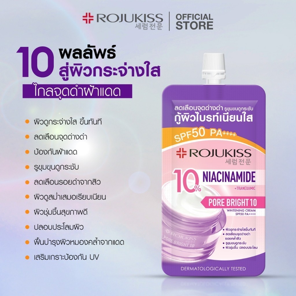 🔥แท้/ดีลสุดคุ้ม/ไลฟ์ทุกวัน🔥(1ซอง) Rojukiss Porebright10 Whitening Cream SPF50+ PA++++ (L)