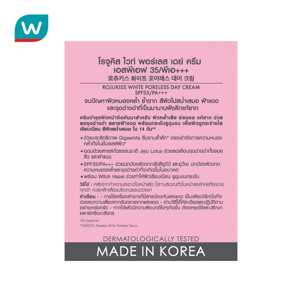 Rojukiss โรจูคิส ไวท์ พอร์เลส เดย์ ครีม เอสพีเอฟ35 พีเอ+++ 45 มล.