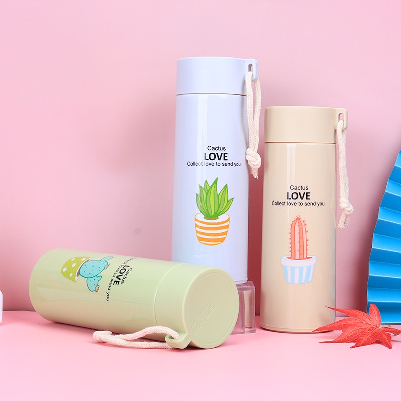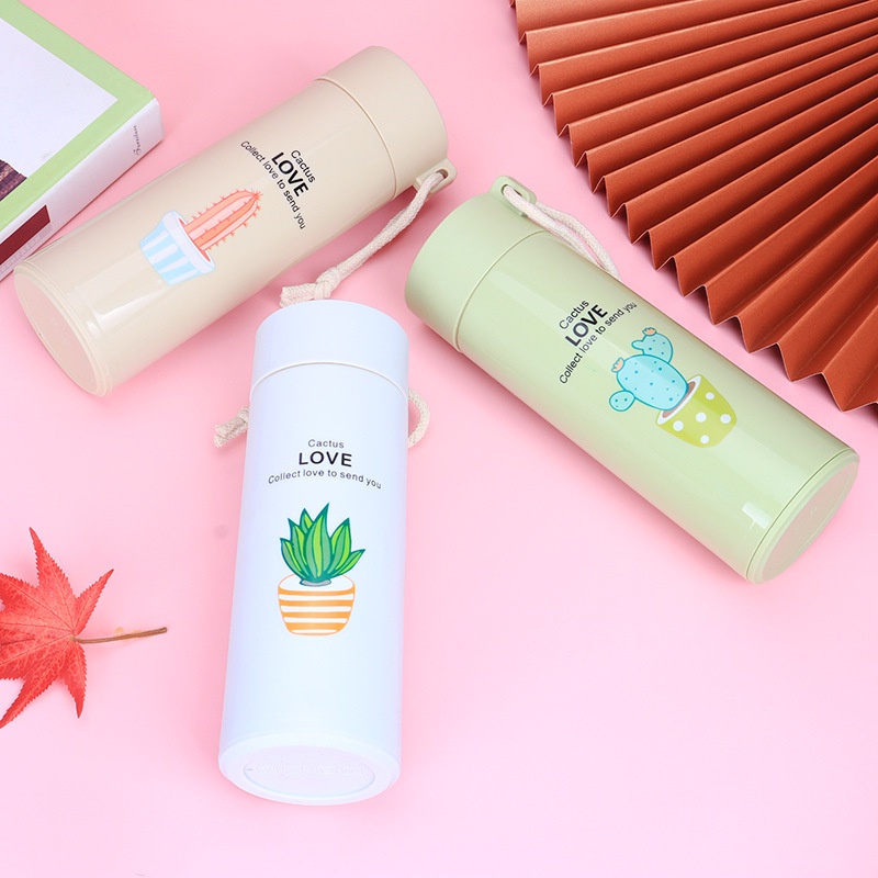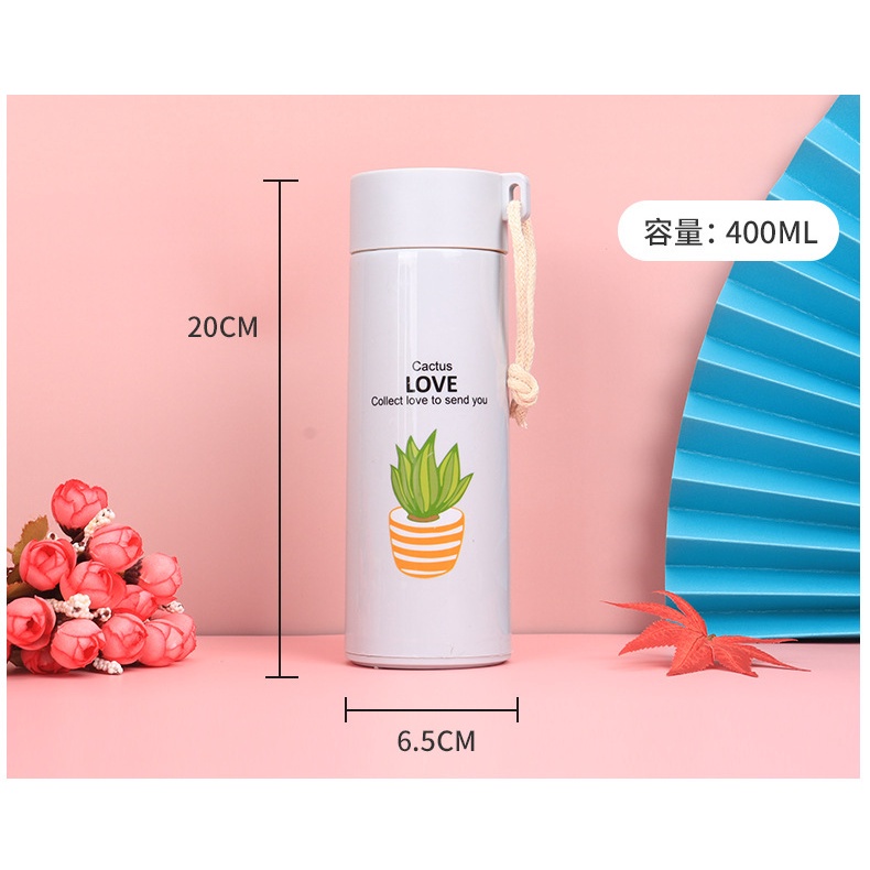 กระติกน้ำ กระบอกน้ำ กระบอกน้ำลาย กระบอกน้ำ LOVE ลายกระบองเพชร เก็บอุณหภูมิ ร้อน-เย็น 400 ml มีให้เลือก 4 ลาย