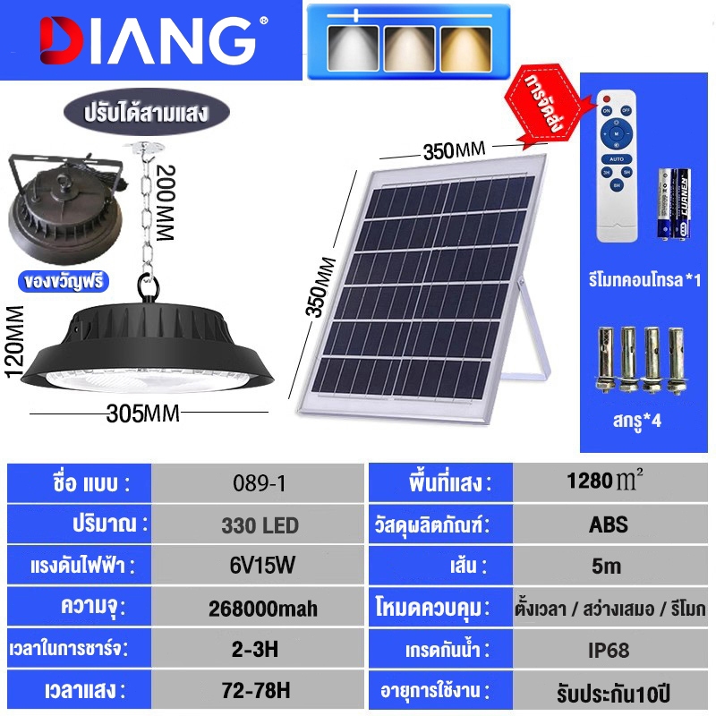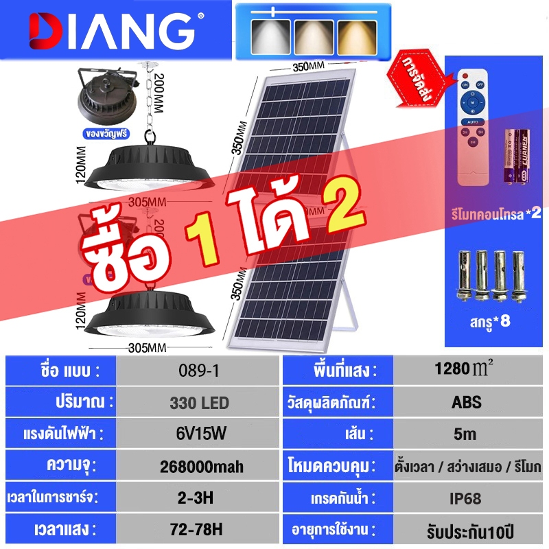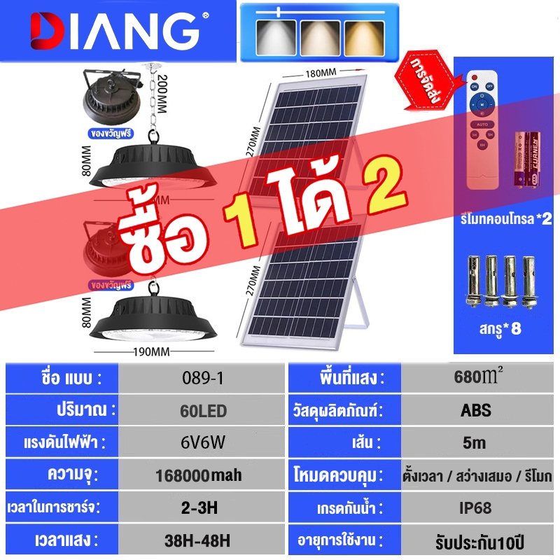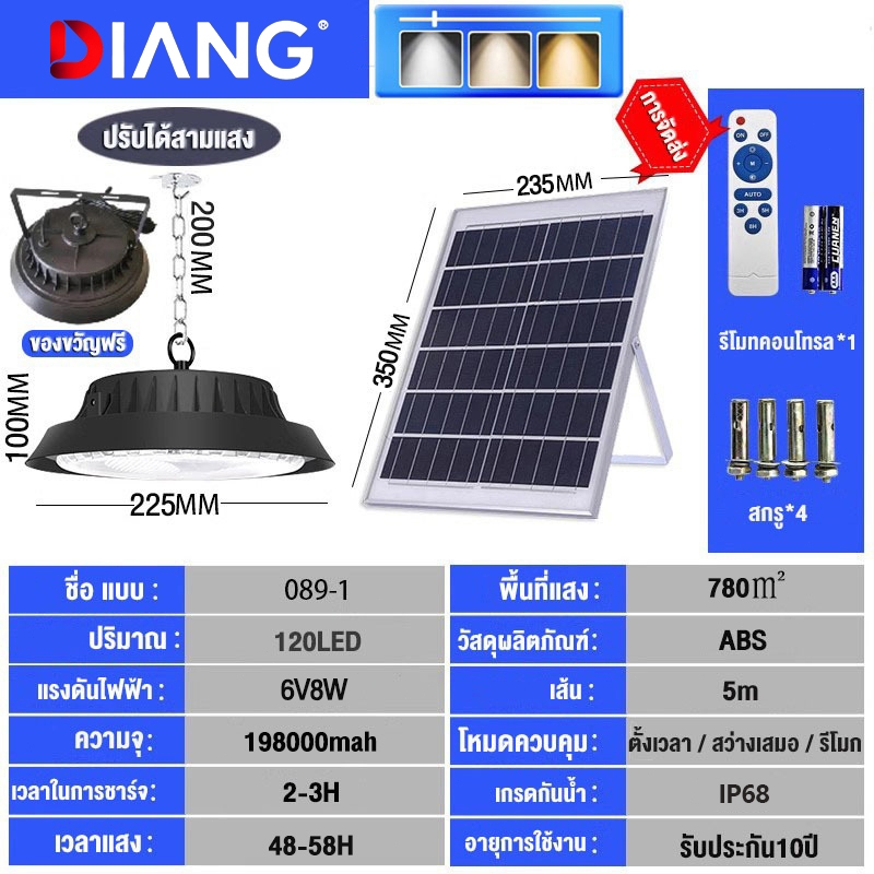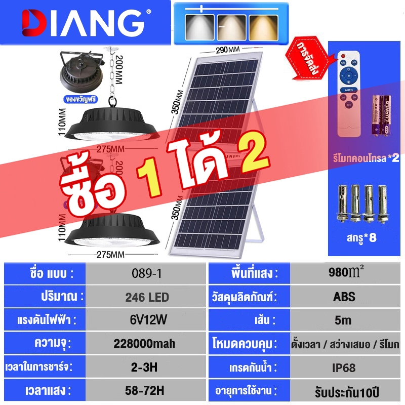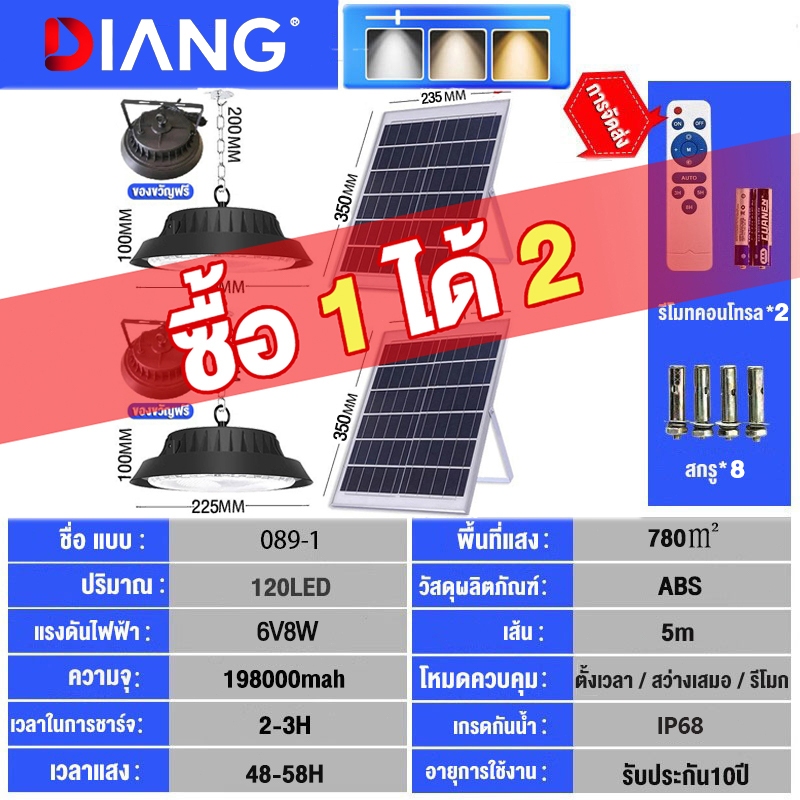 DIANG วินเทจ โคมไ ฟโซลาร์เซลล์ ไฟโซล่าเซลล์ ไฟสปอร์ตไลท์ Solar light นแสงสีขาว เหลือง อุ่น 1แผง1โคมไฟ จับเวลาระ