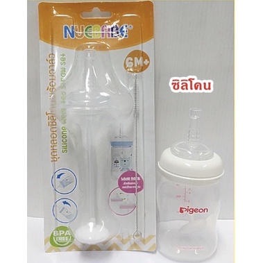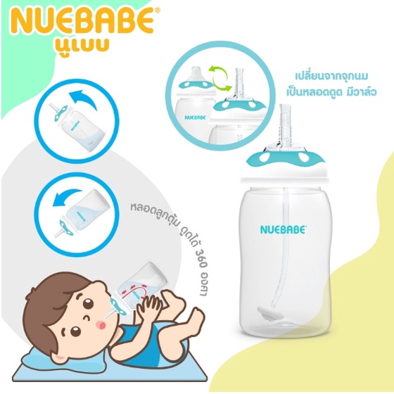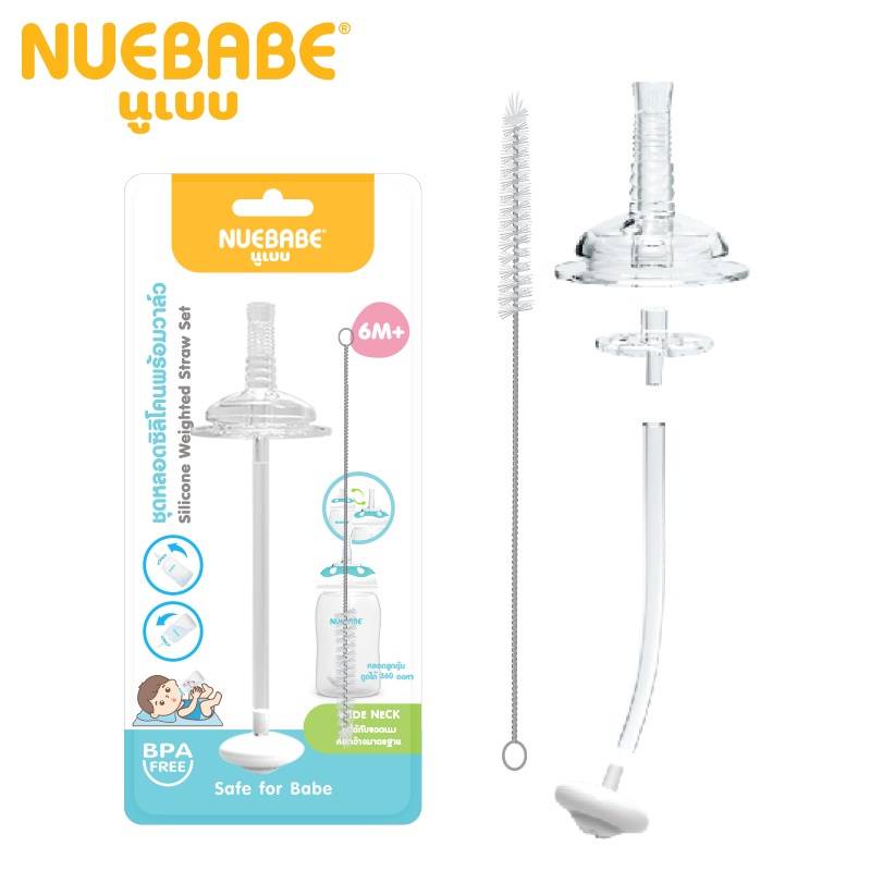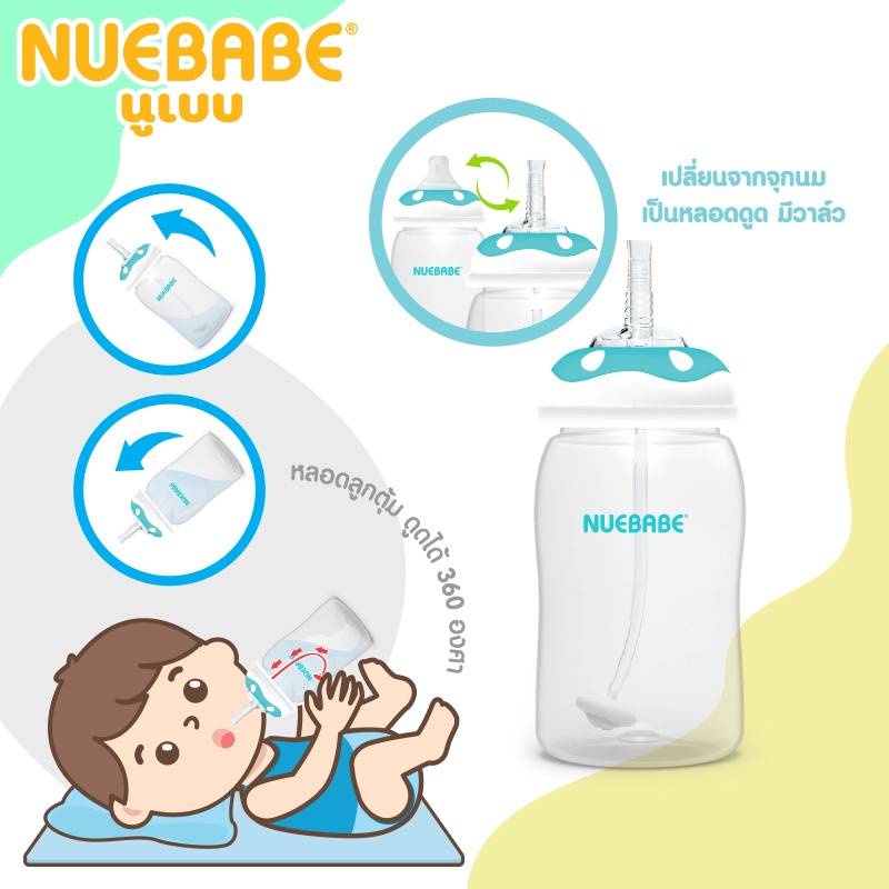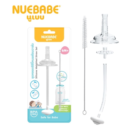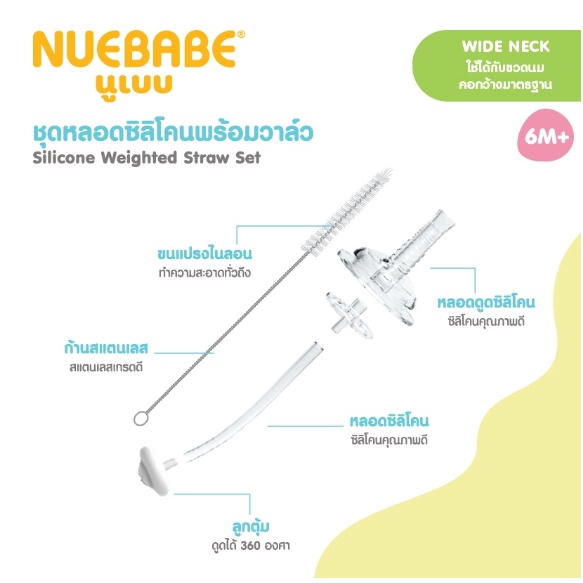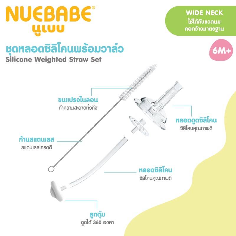 Nuebabe ชุดหลอดซิลิโคนพร้อมวาล์ว ใช้ได้กับขวดนมคอกว้างมาตรฐาน-BA0023