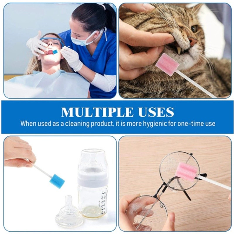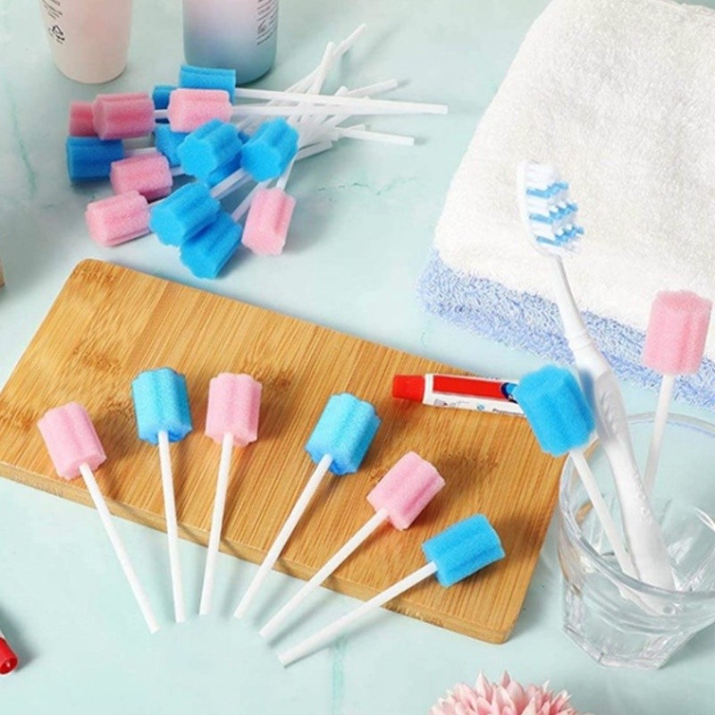 100 ชิ้นทันตกรรมทิ้งฟองน้ํา Swab ทําความสะอาดฟันปาก Swabs Oral Care