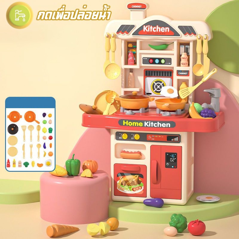 ชุดครัวของเล่นเด็กชุด Home Kitchen ชุดครัวจำลอง ทำอาหาร มีเสียง มีไฟ ชุดครัวจำลอง มีเสียง มีไฟ กดน้ำได้ มีควัน