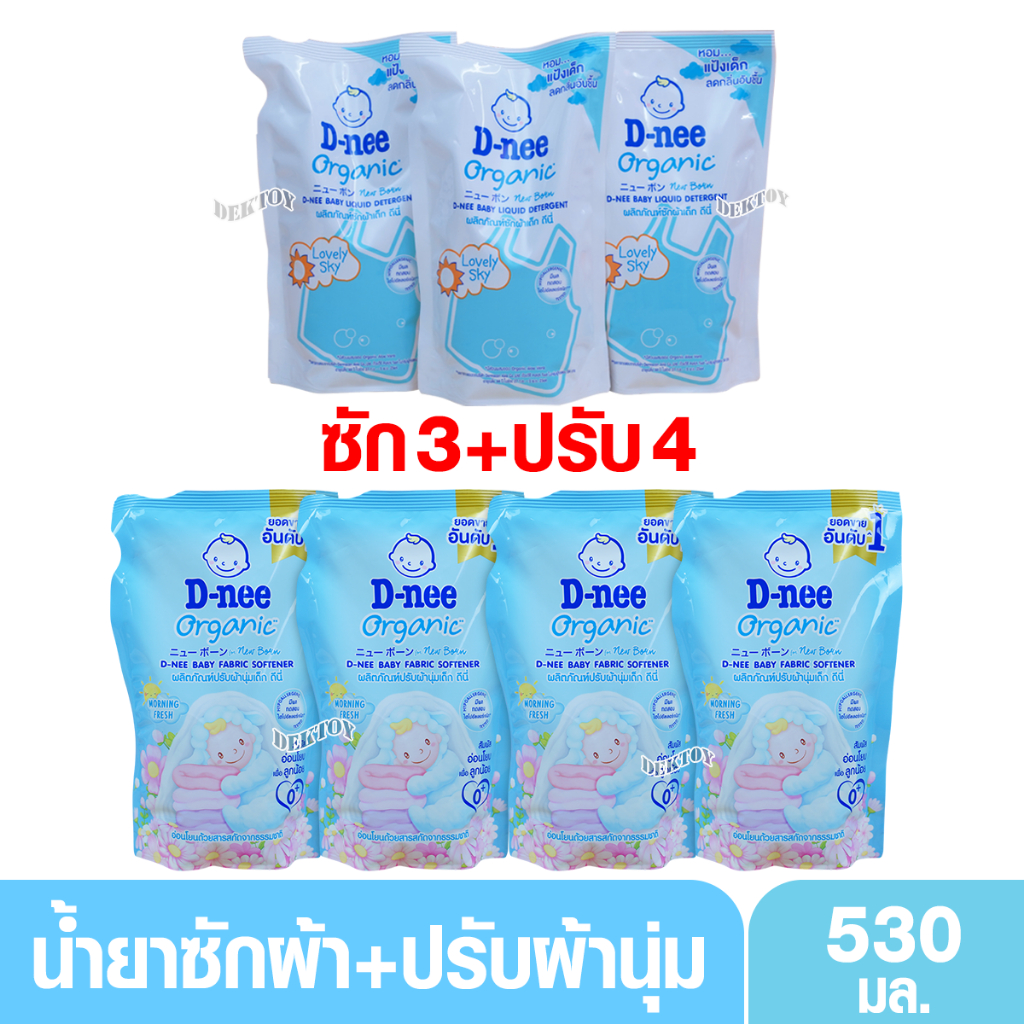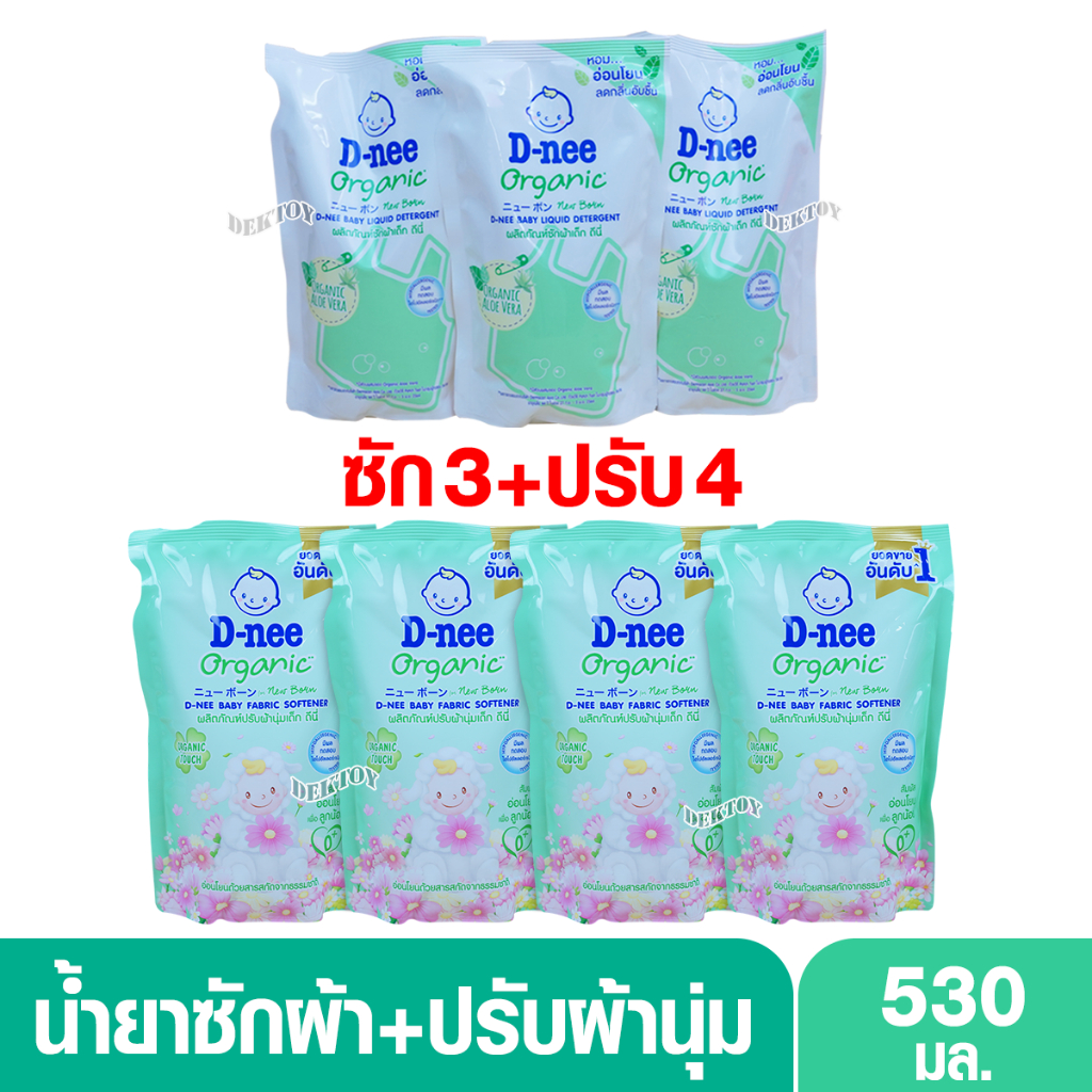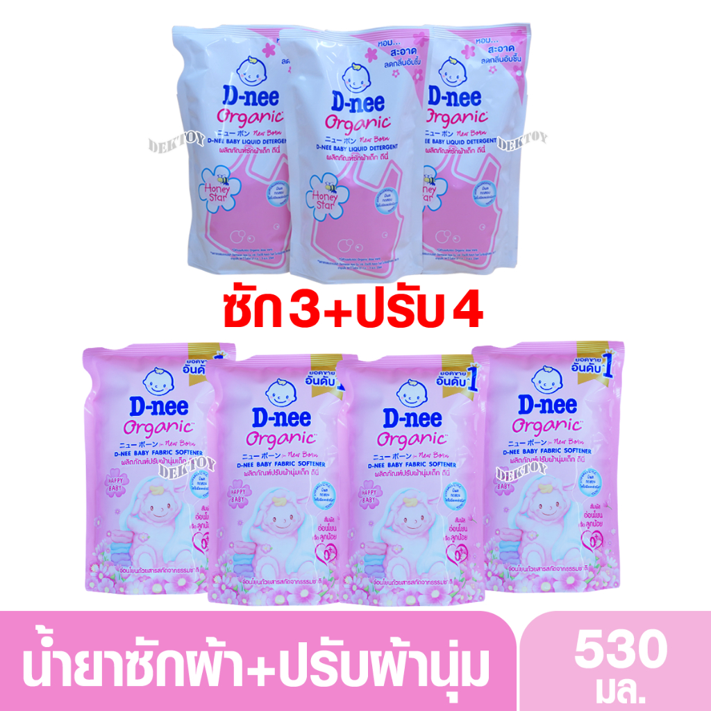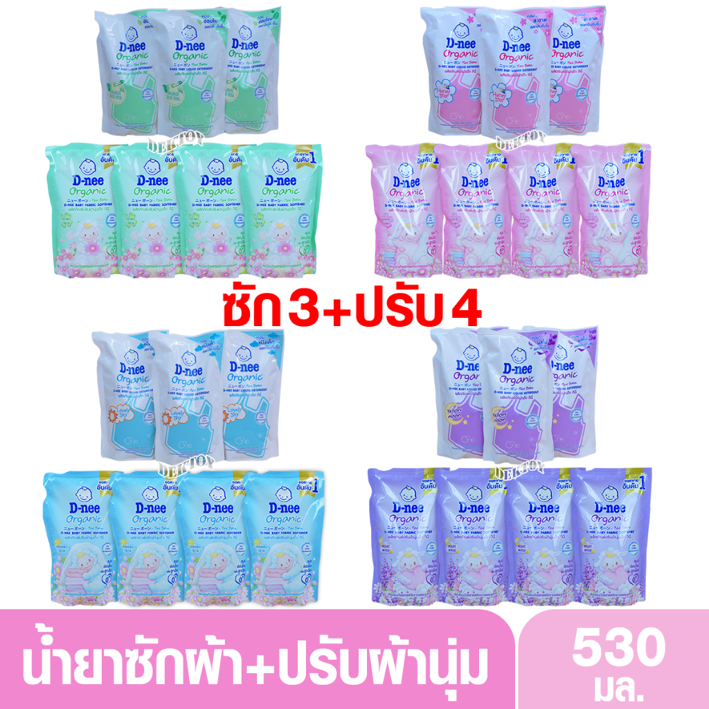 3 แถม 4 D-nee น้ำยาซักผ้าดีนี่+ปรับผ้านุ่มดีนี่ 530 มล.