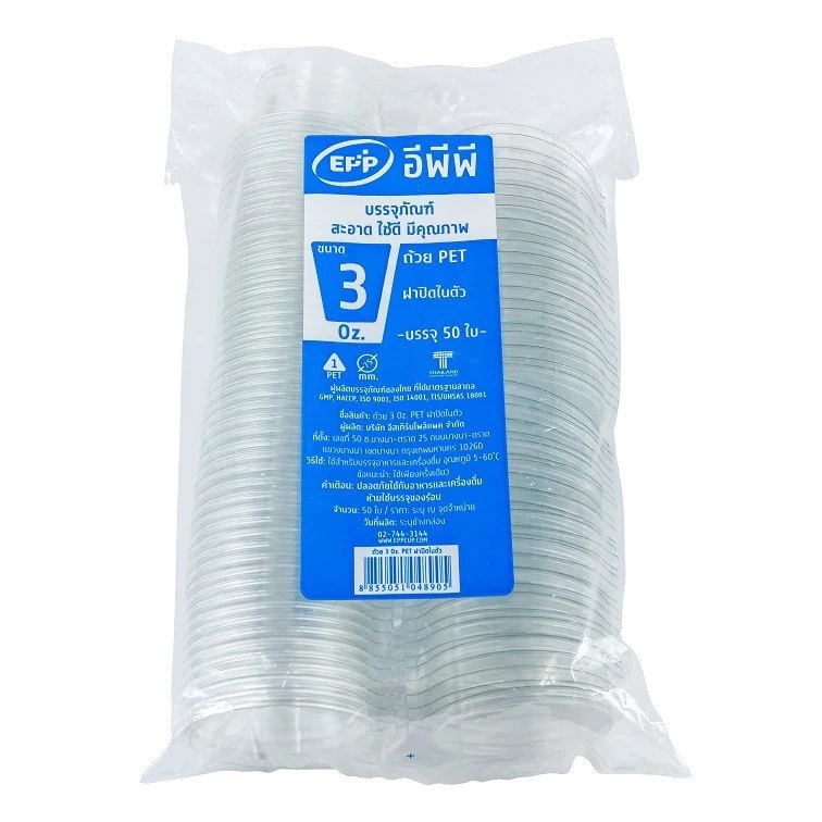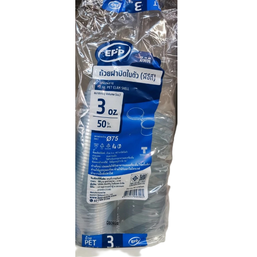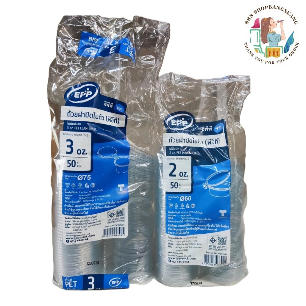 ถ้วยน้ำจิ้ม ถ้วยฝาปิดในตัว 2ออนซ์ ,3 ออนซ์ ตรา EPP 50ใบ/แพ็ค ทรงกลม