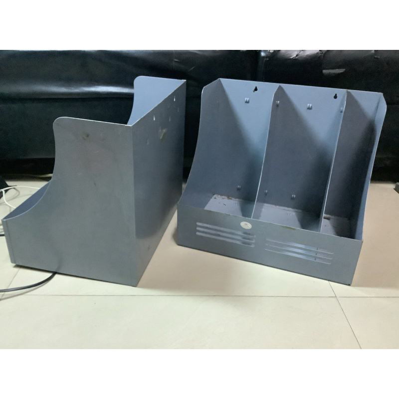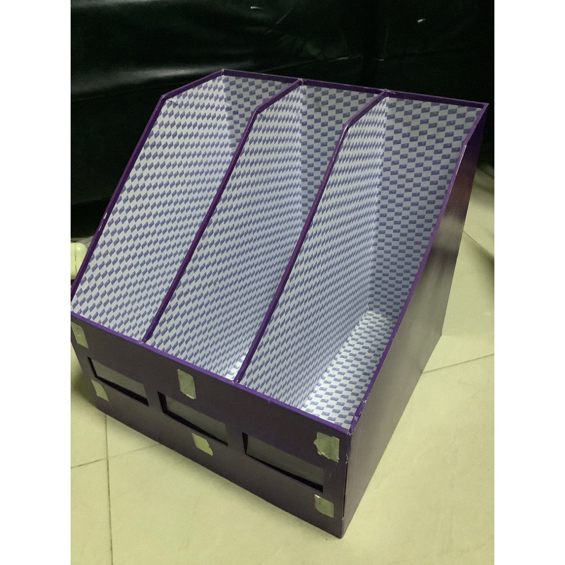 มือสอง กล่องใส่แฟ้มปากตัด 3ช่อง ( มีตำหนิบ้าง ) กระดาษแข็งอย่างดีหุ้มด้วยกระดาษอาร์ตลายผ้า