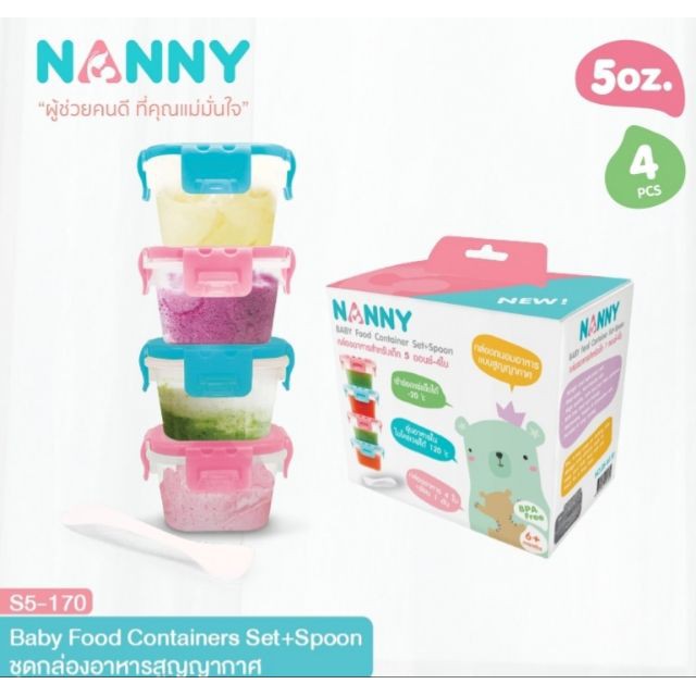 NANNY กล่องอาหารสำหรับเด็ก 5ออนซ์ 4 ใบ+ช้อน 1 อัน S5-170