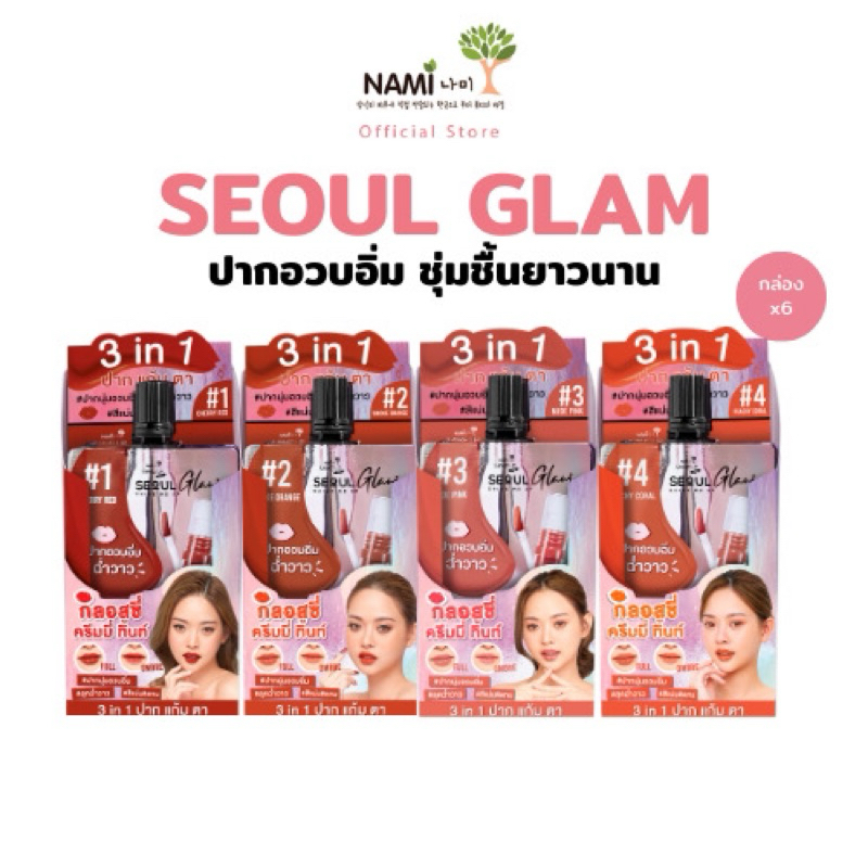 ลิปนามิ โซลแกลม (แบบกล่อง*6ซอง) NAMI MAKE UP PRO SEOUL GLAM GLOSSY CREAMY TINT ลิปครีมมี่ ทิ้นท์
