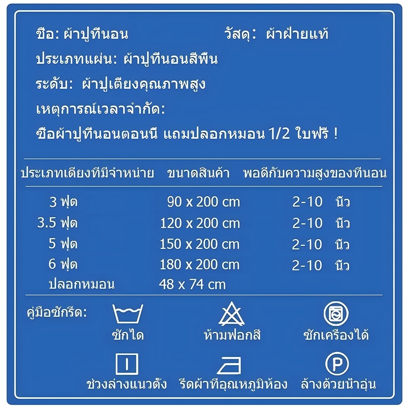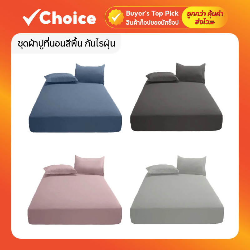 ชุดผ้าปูที่นอนสีพื้น กันไรฝุ่น ขนาด 3, 3.5, 5, 6 ฟุต พร้อมปลอกหมอน ผ้านุ่ม นอนสบาย