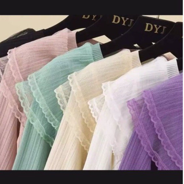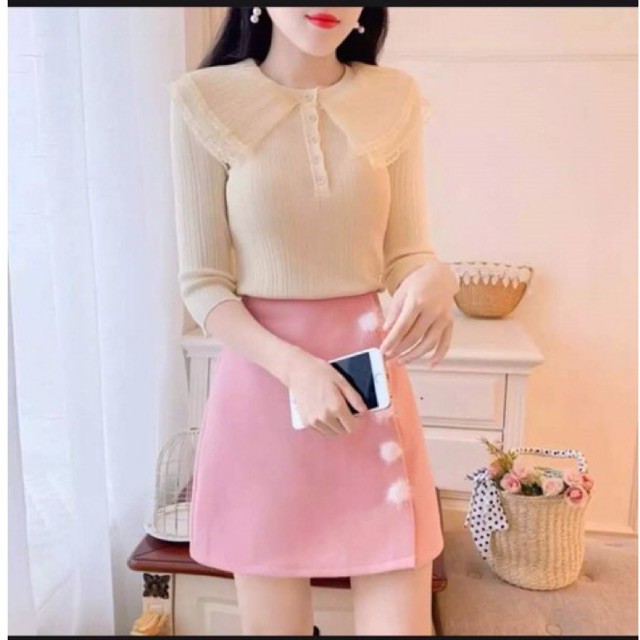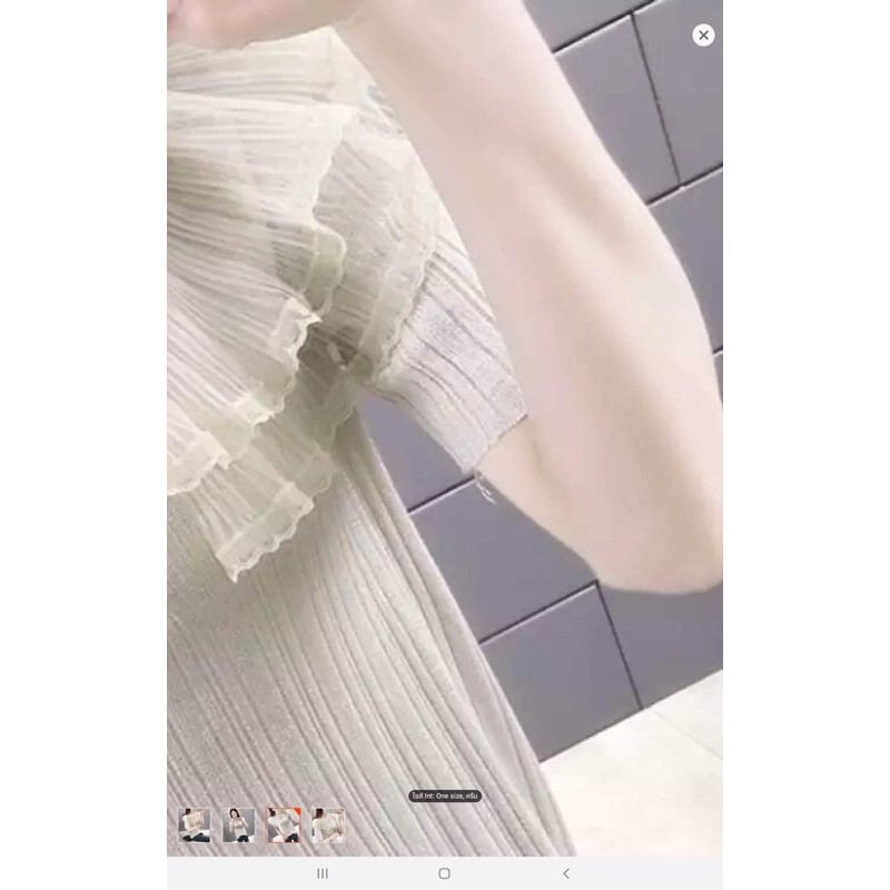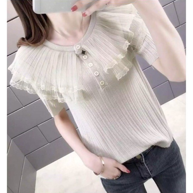 เสื้อครอปไหมพรม สีครีม แต่งปกผ้าชีฟองสองชั้น กระดุมหน้า ไหมพรมเนื้อดี มือ1 จำนวนจำกัด