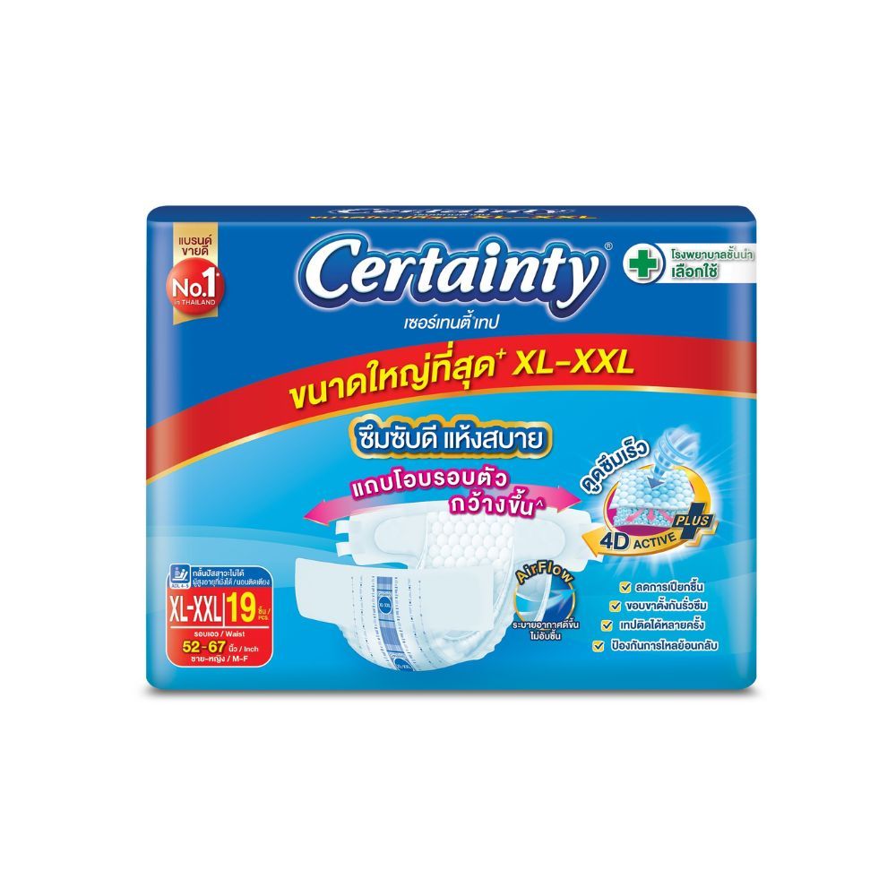 CERTAINTY SUPER JUMBO ผ้าอ้อมผู้ใหญ่ชนิดเทป ขนาด XL-XXL (แพ็ค 19 ชิ้น)