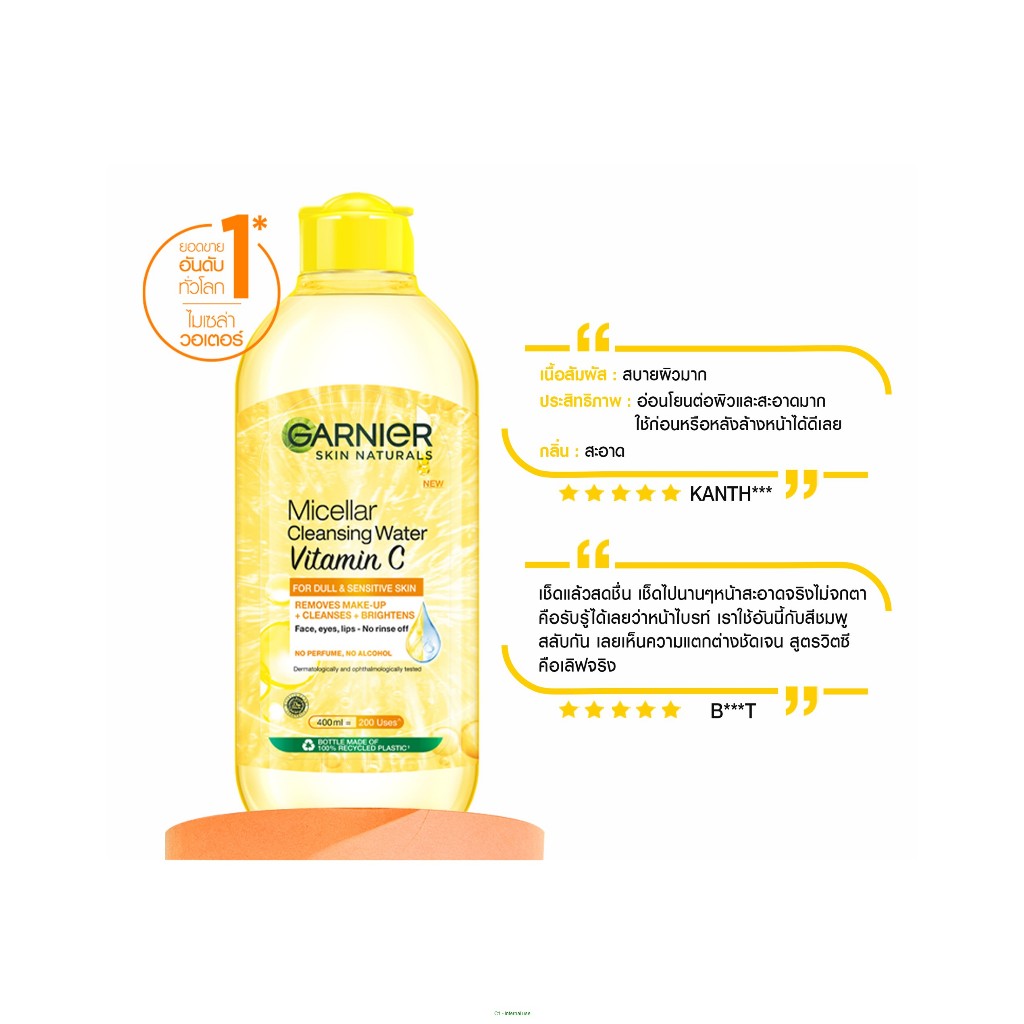 การ์นิเย่ ไมเซล่า คลีนซิ่ง วอเตอร์ ขนาด 400 มล. (แพ็คคู่) GARNIER MICELLAR WATER 400 ML. (TWIN PACK)