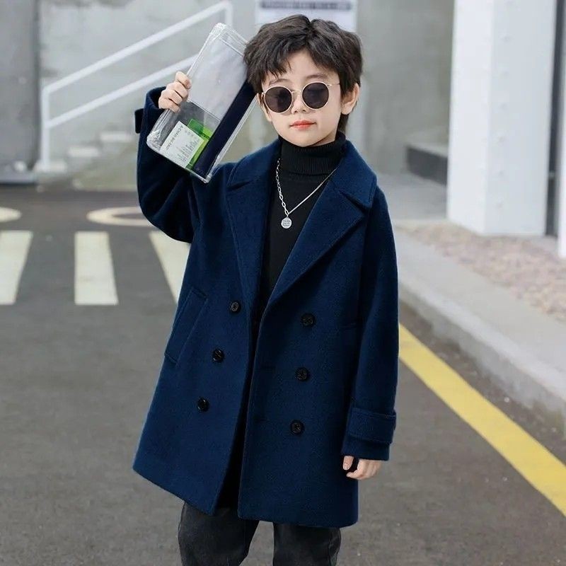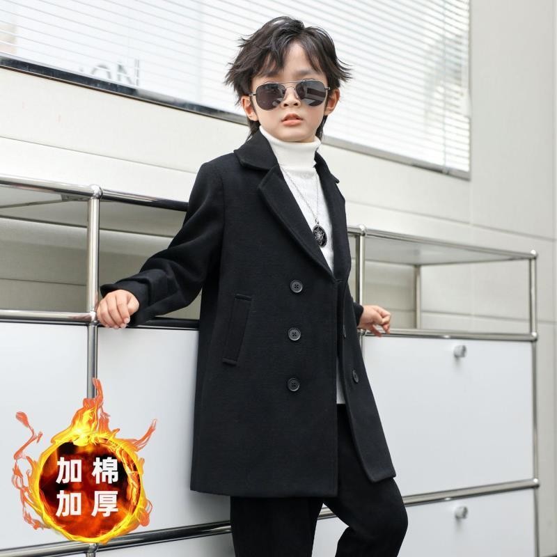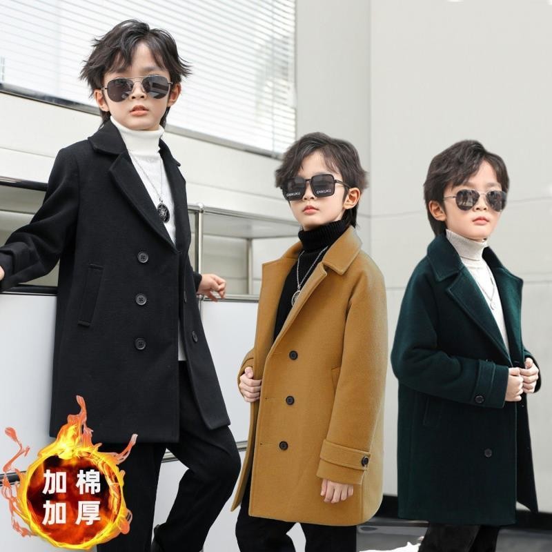 เด็กเสื้อขนสัตว์ฤดูใบไม้ผลิและฤดูใบไม้ร่วงสไตล์เกาหลีกลางความยาวเสื้ออบอุ่นหนา ที เช่าโค้ต ขนสัตว์เด็กบดขนาดใหญ่衣春秋季韩版中长款外套保保保湿套男童9.22