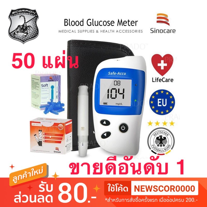 🔥Flash Sale🔥 เครื่องตรวจวัดน้ำตาล Glucose Sinocare รุ่น Safe-Accu2 มี Certificate รับรอง ที่วัดเบาหวาน
