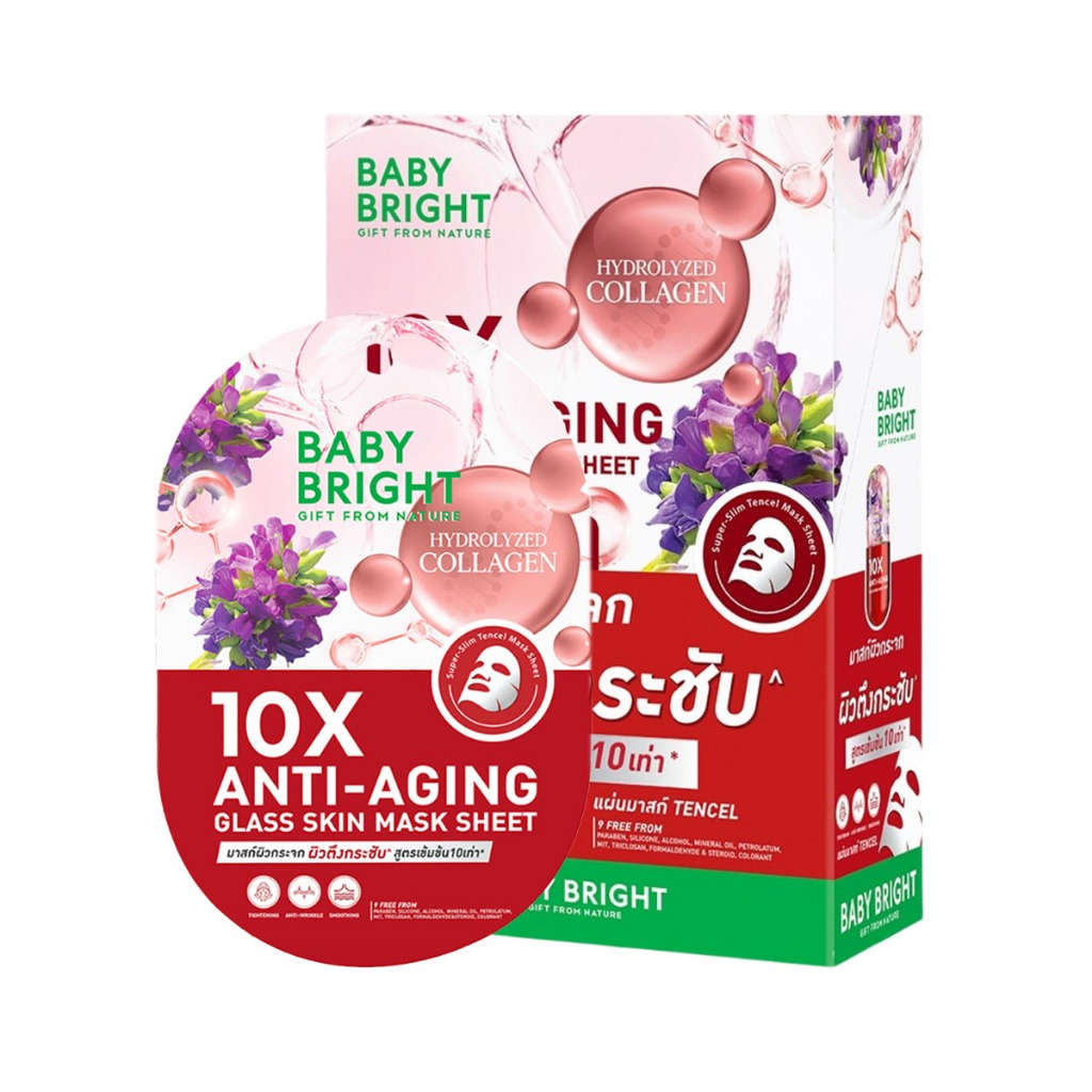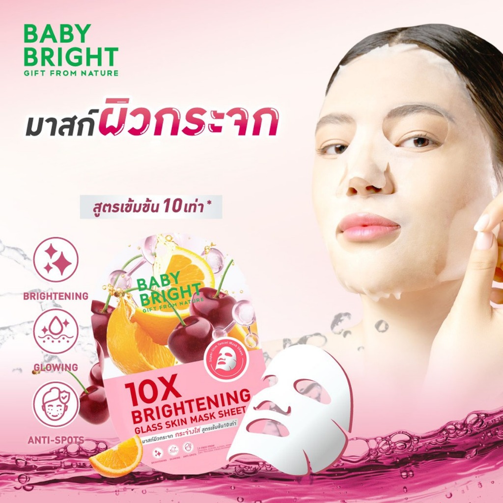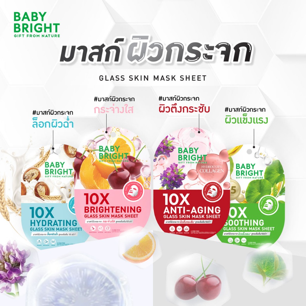 BABYBRIGHT เบบี้ไบร์ท เท็นเอ็กซ์ กลาสสกิน มาสก์ชีท 20 กรัม. (ยกกล่อง 6 ซอง / มีให้เลือก 4 สูตร)
