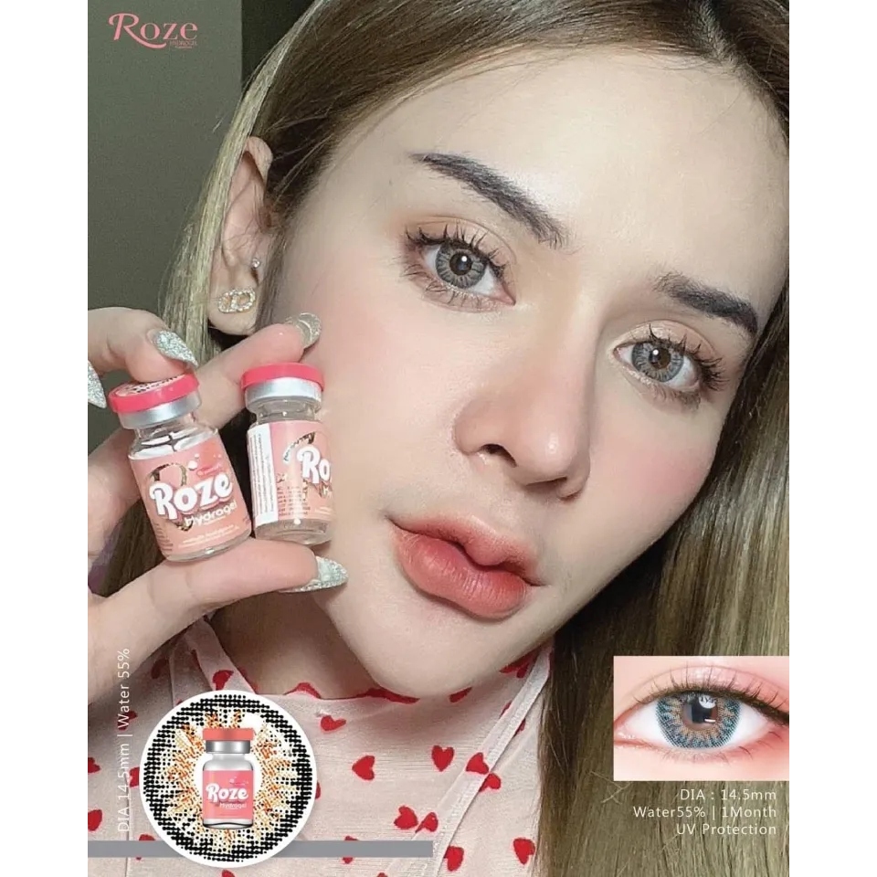 (1 คู่) Roze Hydrogel Contact Lens คอนแทคเลนส์ ค่าสายตา 0.00(ปกติ) ลาย Look Fresh #สีเทา (แถมตลับ)