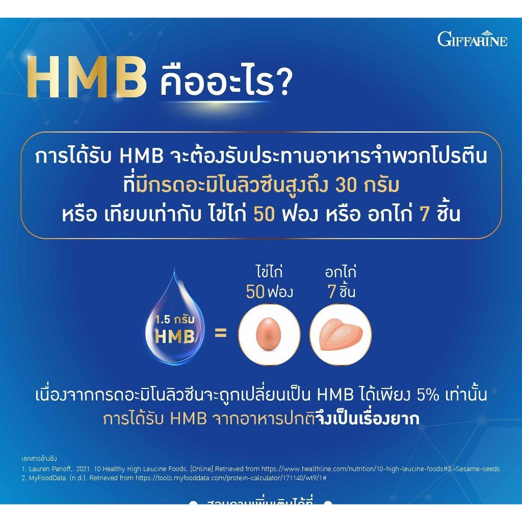 ( ส่งฟรี ) เอช เอ็ม บี พลัส วิตามินดี 3 กิฟฟารีน HMB PLUS VITAMIN D3 กล้ามเนื้อแข็งแรง