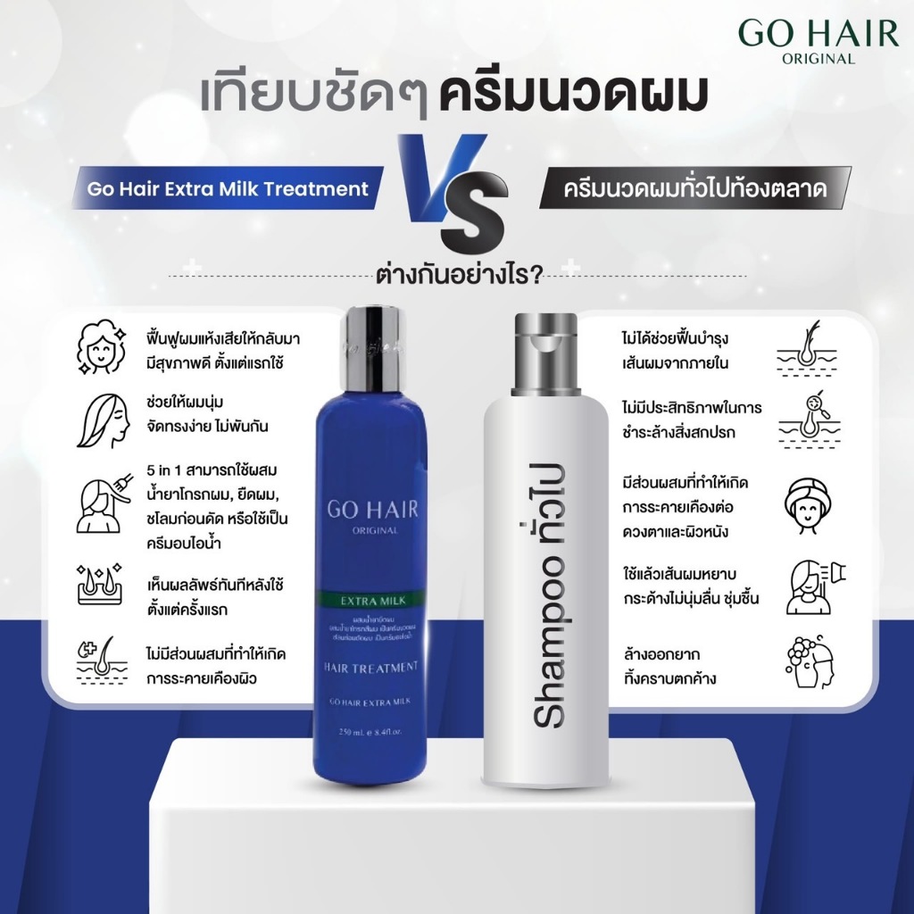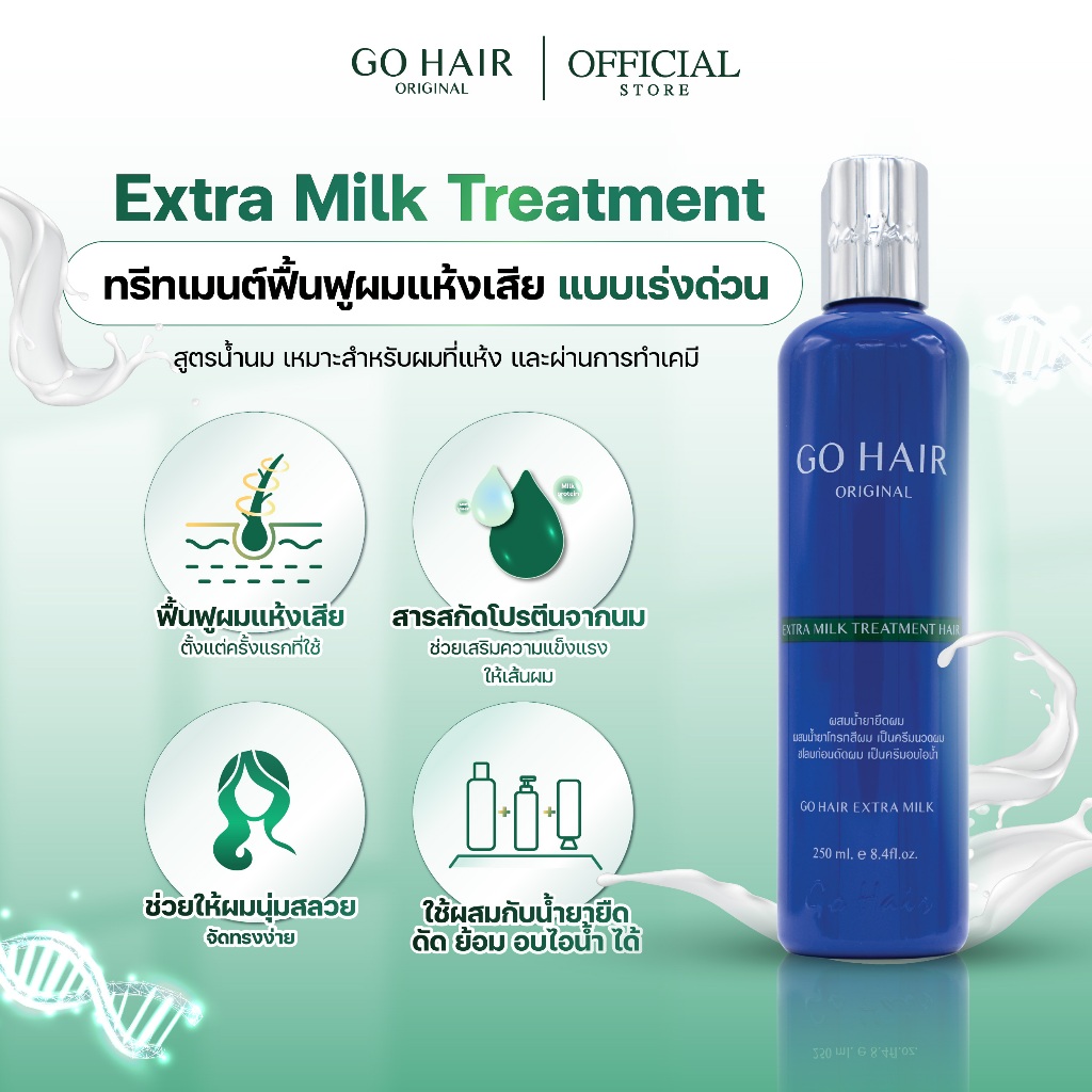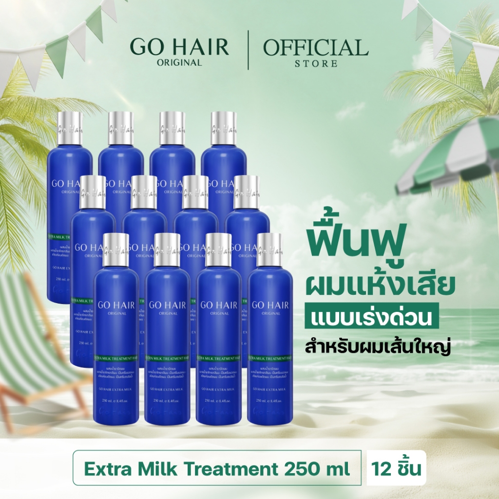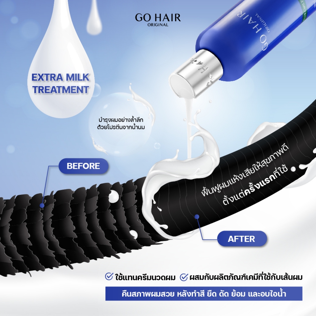 [แพ็ค12 ทรีทเมนท์ขวดน้ำเงิน] GO HAIR Extra Milk Treatment 250ml X12 โกแฮร์น้ำเงิน ครีมน้ำนม ผมเส้นใหญ่ ผมเสีย ครีมหมักผม