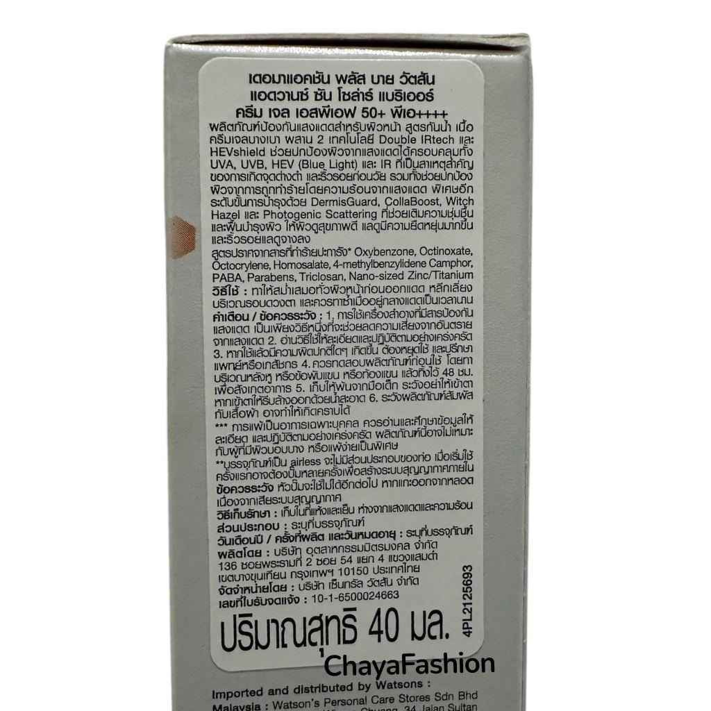 *SALE* Dermaction Plus แอดวานซ์ ซัน โซล่าร์ แบริเออร์ ครีม เจล SPF50+Pa++++ 40มล. Exp09/03/28