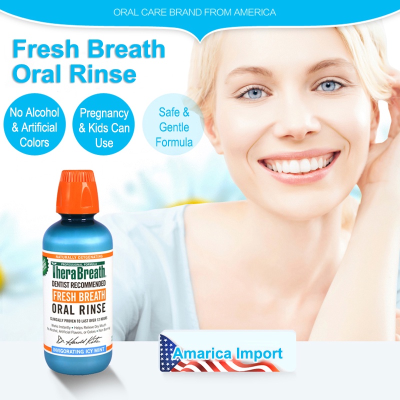 [1261] น้ำยาบ้วนปาก สูตรปราศจากแอลกอฮอล์ Icy Mint TheraBreath Oral Rinse 473ml