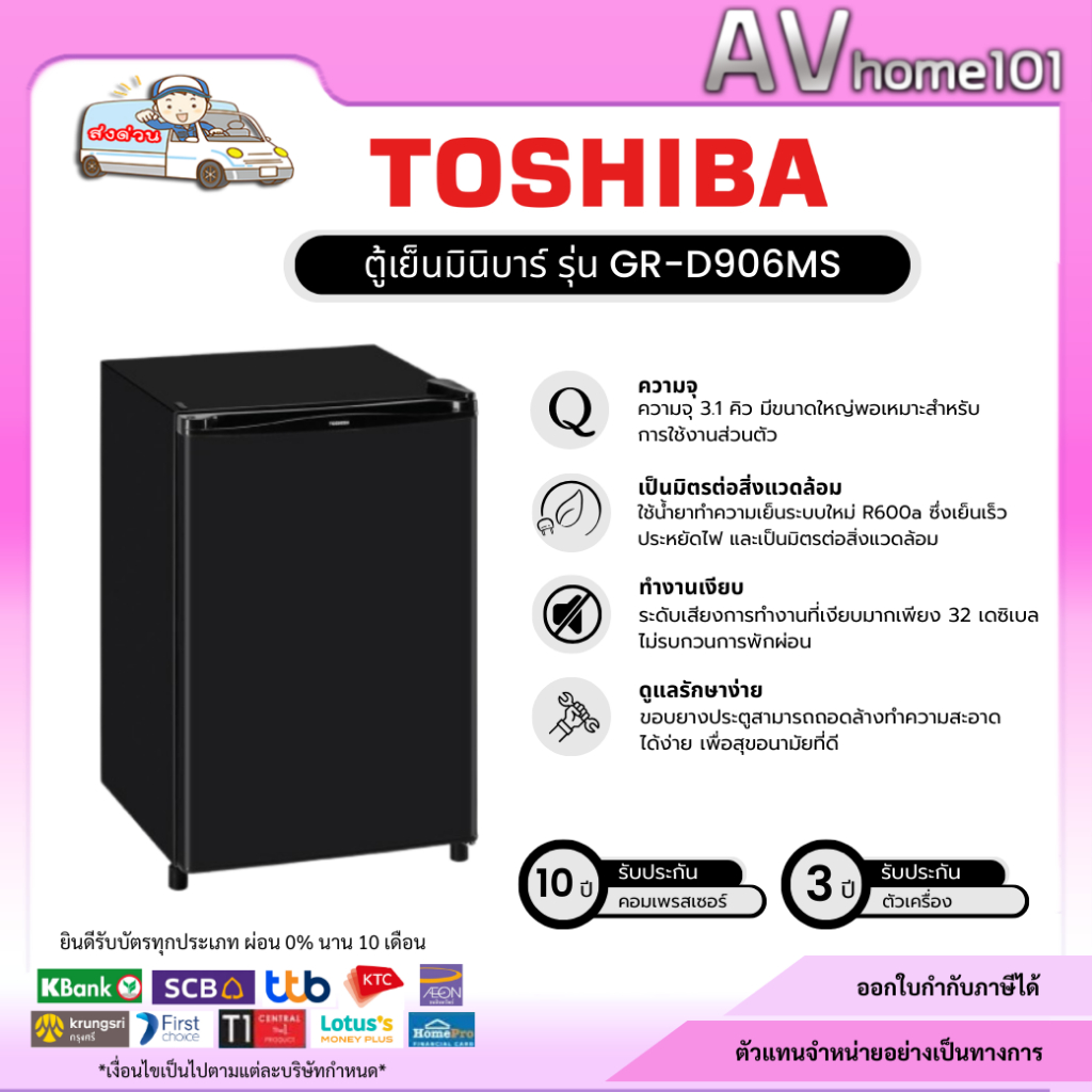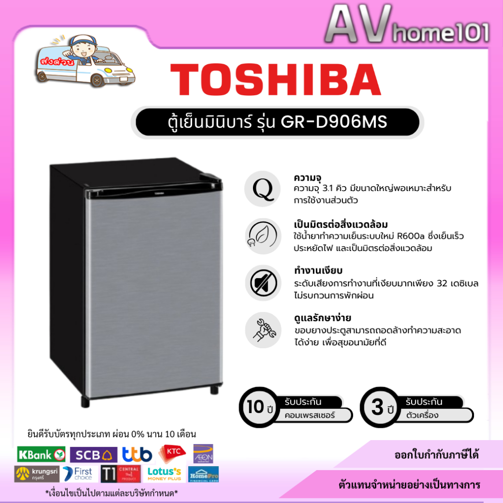 ตู้เย็นToshiba 1 ประตู (3.1 คิว)รุ่น GR-D906