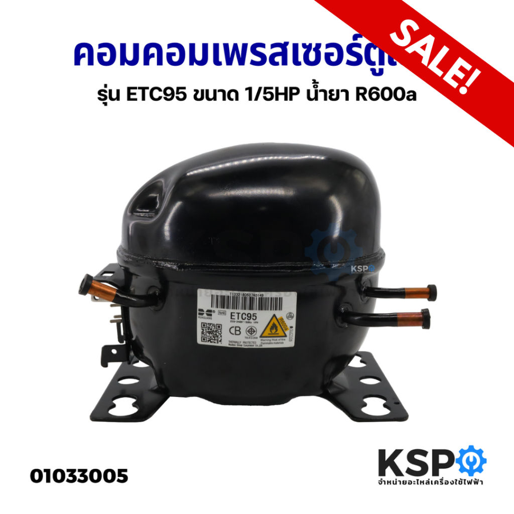 คอมตู้เย็น คอมเพรสเซอร์ รุ่น ETC95 ขนาด 1/5HP น้ำยา R600a อะไหล่ตู้เย็น
