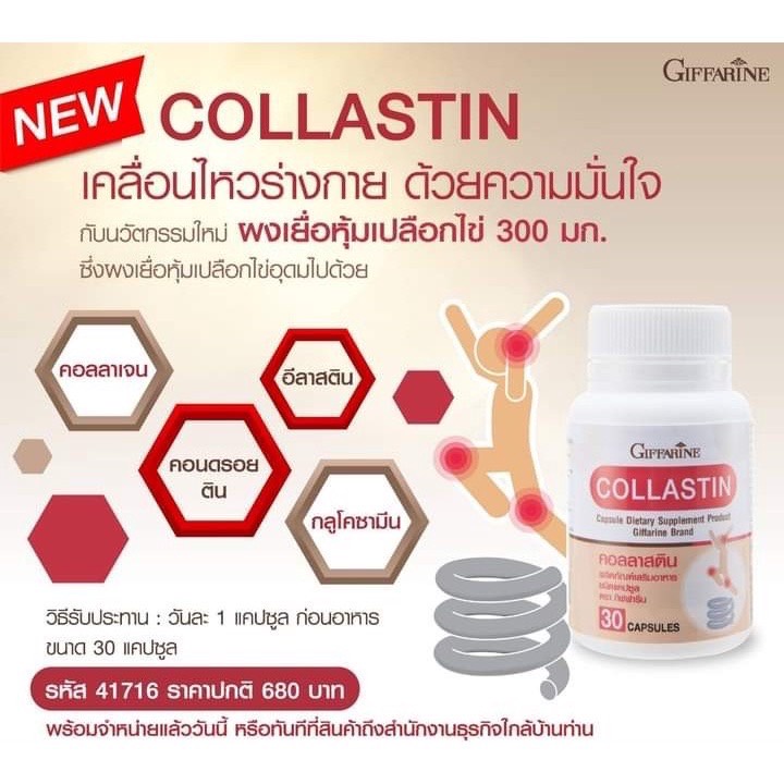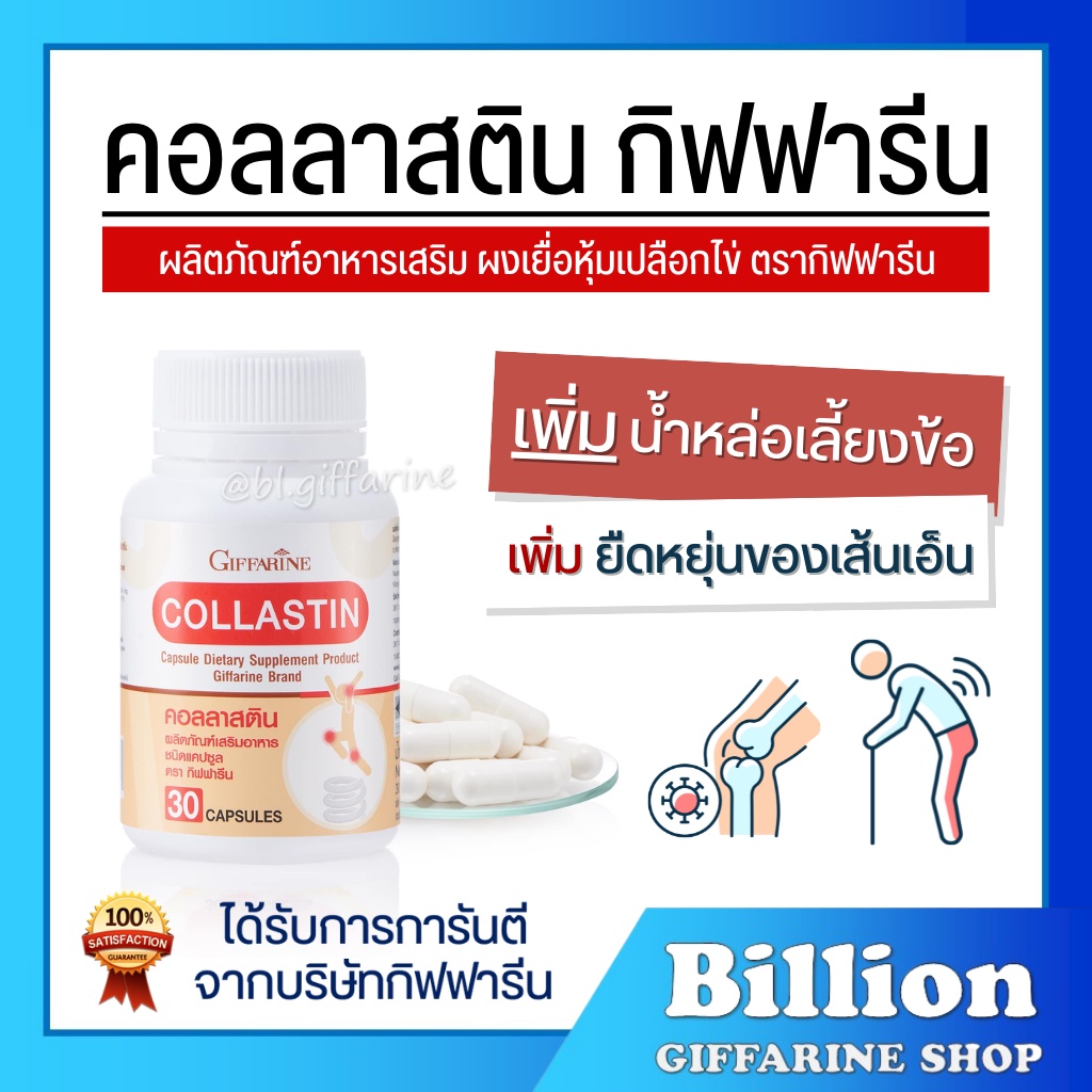 [ ส่งฟรี ] คอลลาสติน กิฟฟารีน Giffarine Collastin ผงเยื่อหุ้มเปลือกไข่ 300 มิลลิกรัม พิ่มน้ำหล่อเลี้ยงข้อ