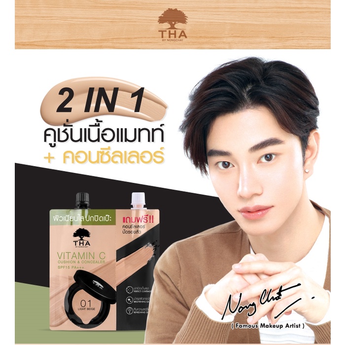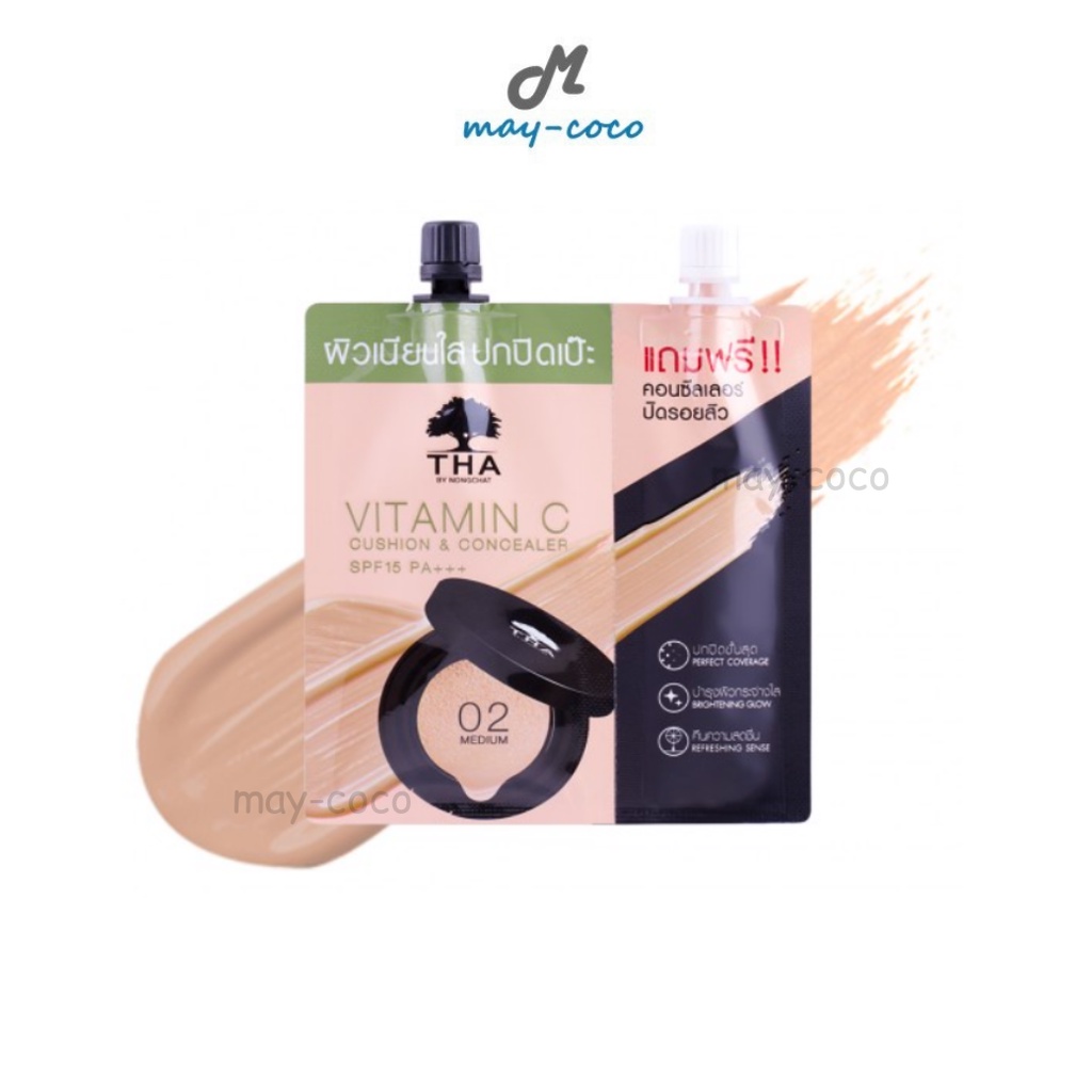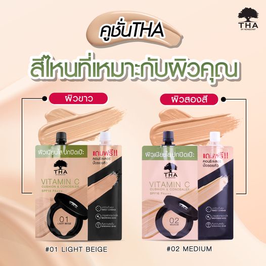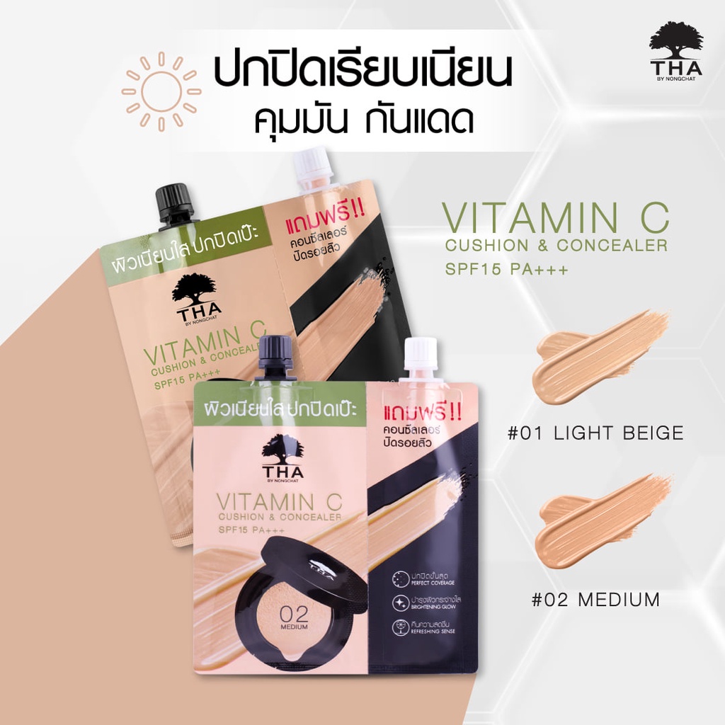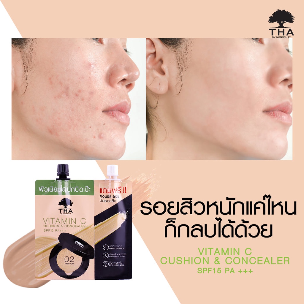ถูก/แท้/มีไลฟ์ คุชชั่น คูชั่น คอนซีลเลอร์ THA By Nongchat Vitamin C Cushion&Concealer SPF15 PA+++ ฑา น้องฉัตร ปกปิด