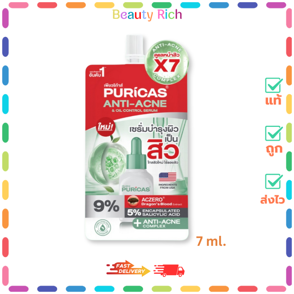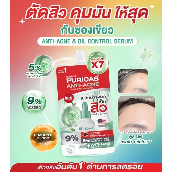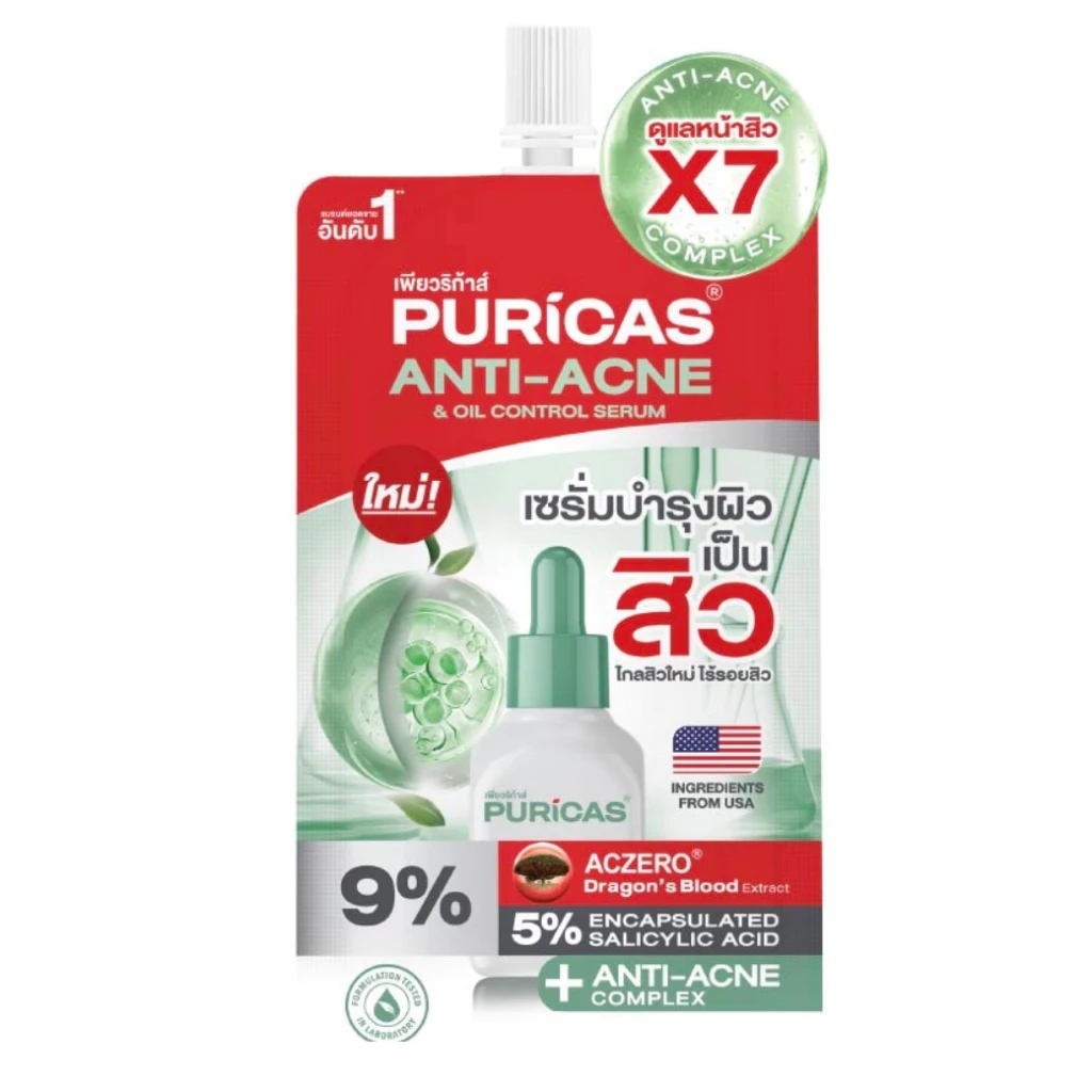 (1 ซอง)Puricas Anti-Acne & Oil Control Serum เพียวริก้า แอนตี้ แอคเน่ แอนด์ ออย คอนโทรลเซรั่ม(7 ml.)