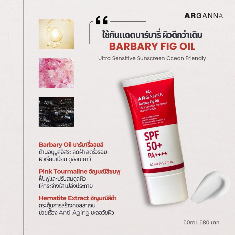 ARGANNA Ultra Sensitive Sunscreen Ocean Friendly SPF50+ PA++++ กันแดดบาร์บารี่ ปกป้องผิวพร้อมบำรุง