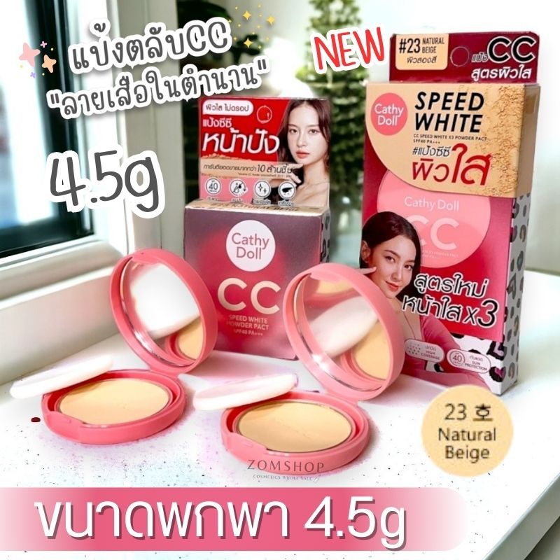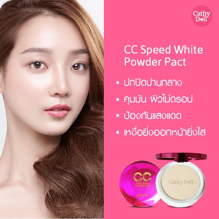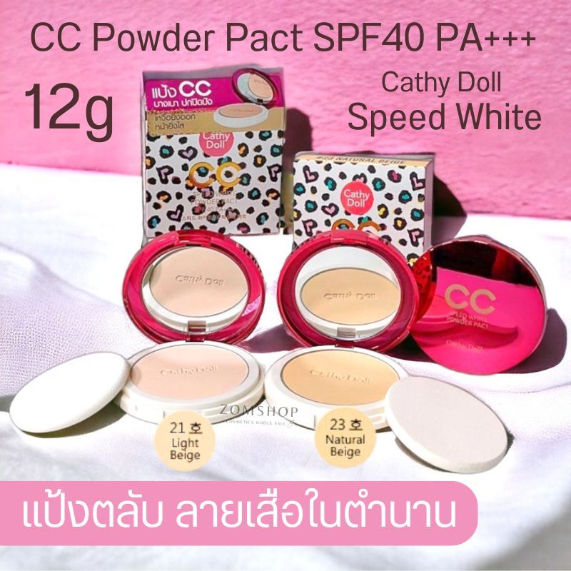 【รุ่นลายเสือ】แป้งตลับในตำนาน CC Powder Pact SPF40 PA+++ 4.5g Cathy Doll Speed White.