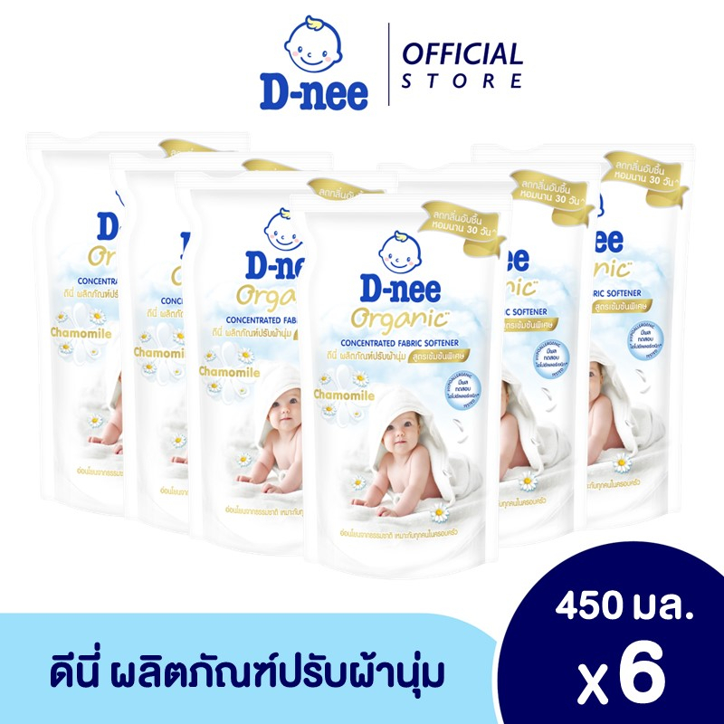 [แพ็ค6]D-nee ดีนี่ ผลิตภัณฑ์ปรับผ้านุ่ม ออร์แกนิค คาโมมายล์ สูตรเข้มข้นพิเศษ 450 มล.: