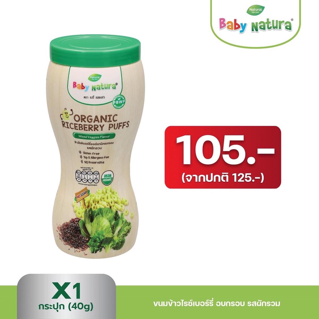 Baby Natura ข้าวไรซ์เบอร์รี่อบกรอบออร์แกนิค รสผักรวม สำหรับเด็ก6เดือน ขึ้นไป (1กล่อง)