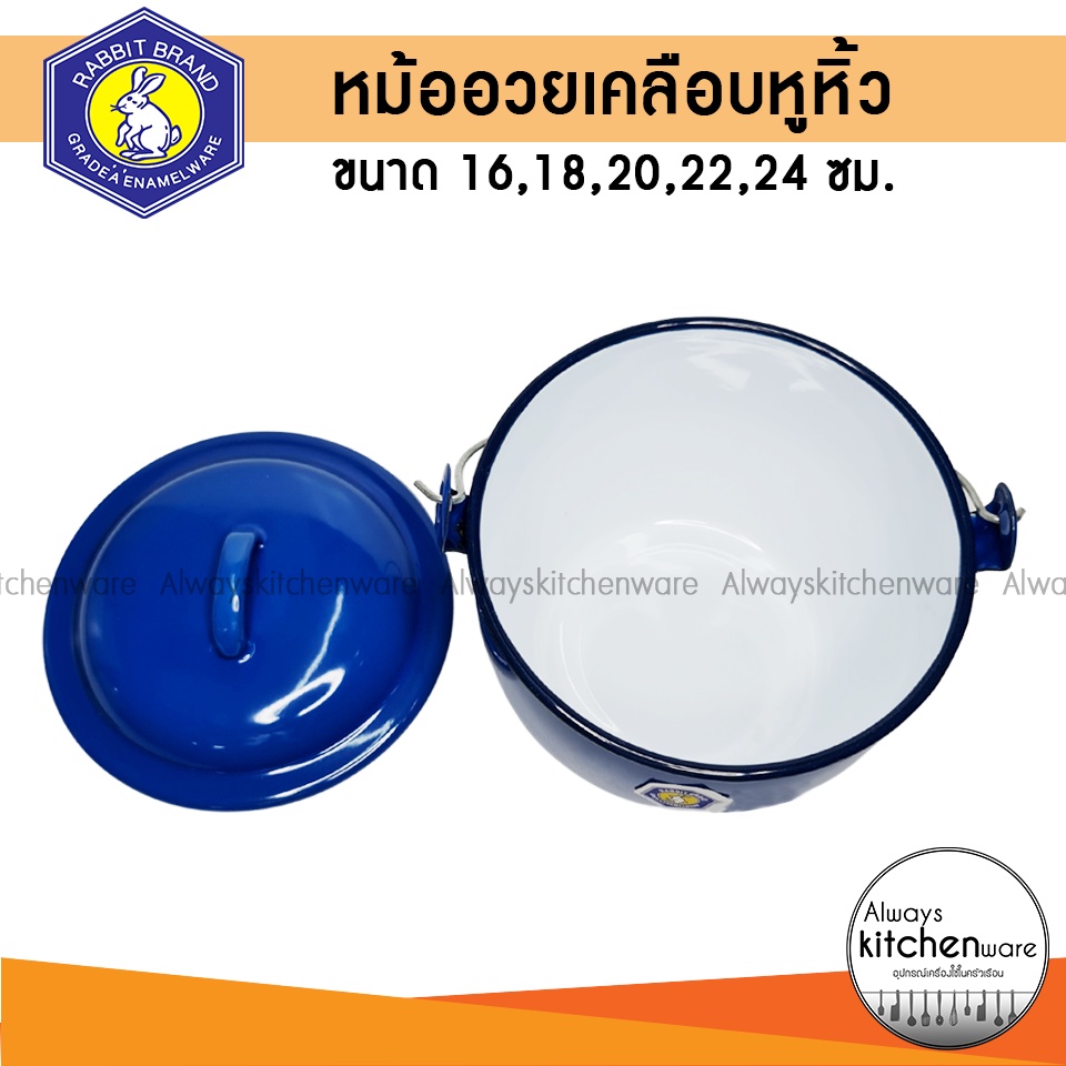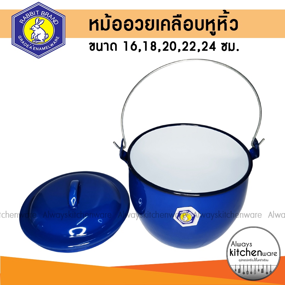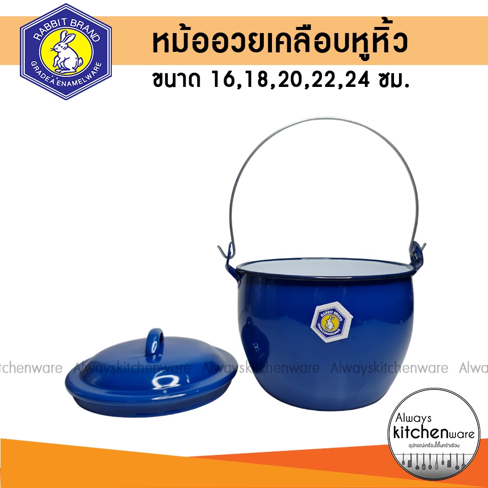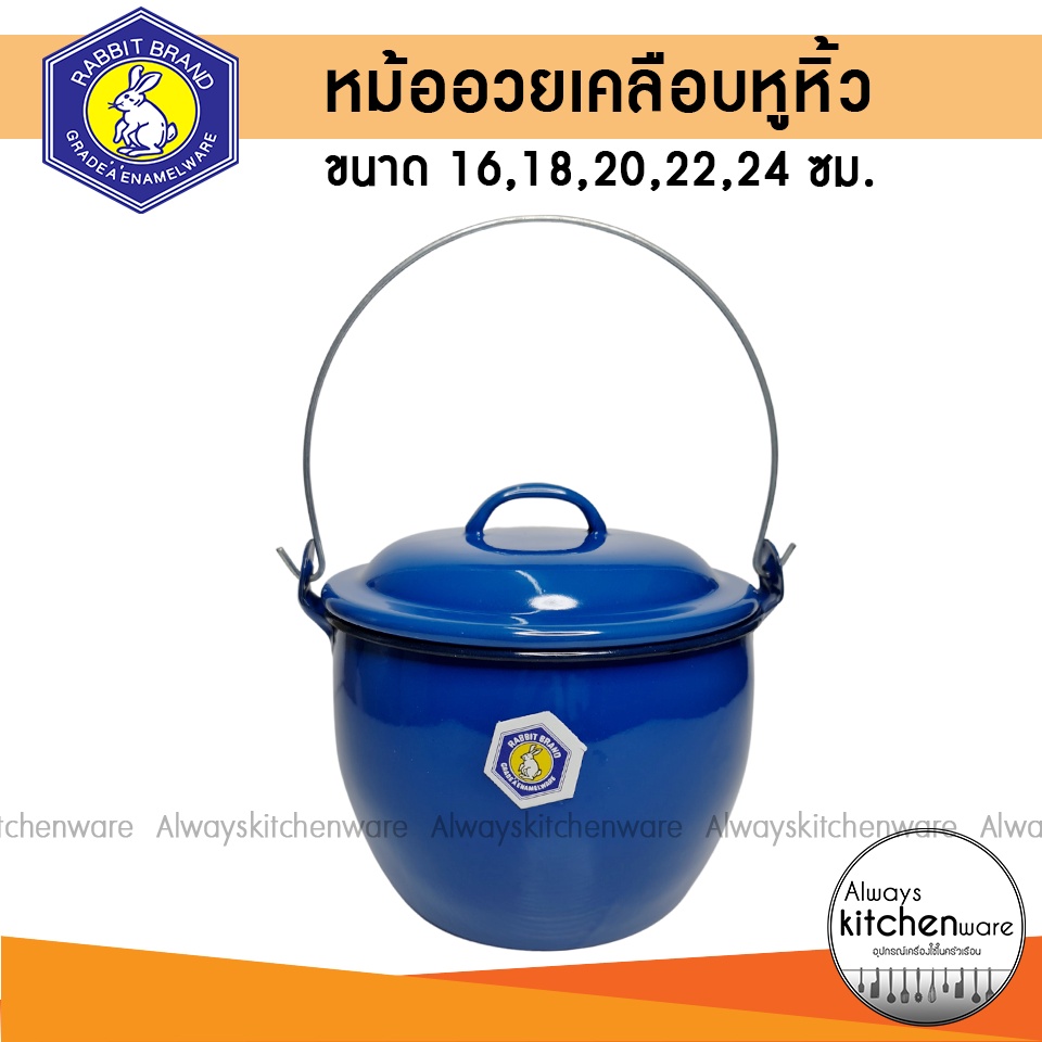 หม้อเคลือบหูหิ้ว หม้อหูหิ้ว หม้ออวย ตรา กระต่าย ขนาด 16,18,20,22,24 ซม.