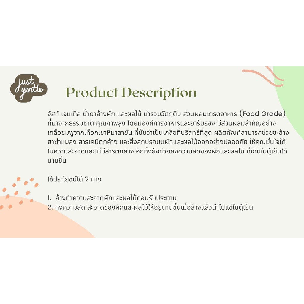 Just Gentle จัสท์ เจนเทิล ผลิตภัณฑ์น้ำยาล้างผัก และผลไม้ Fruit and Veggie Wash (300ml)