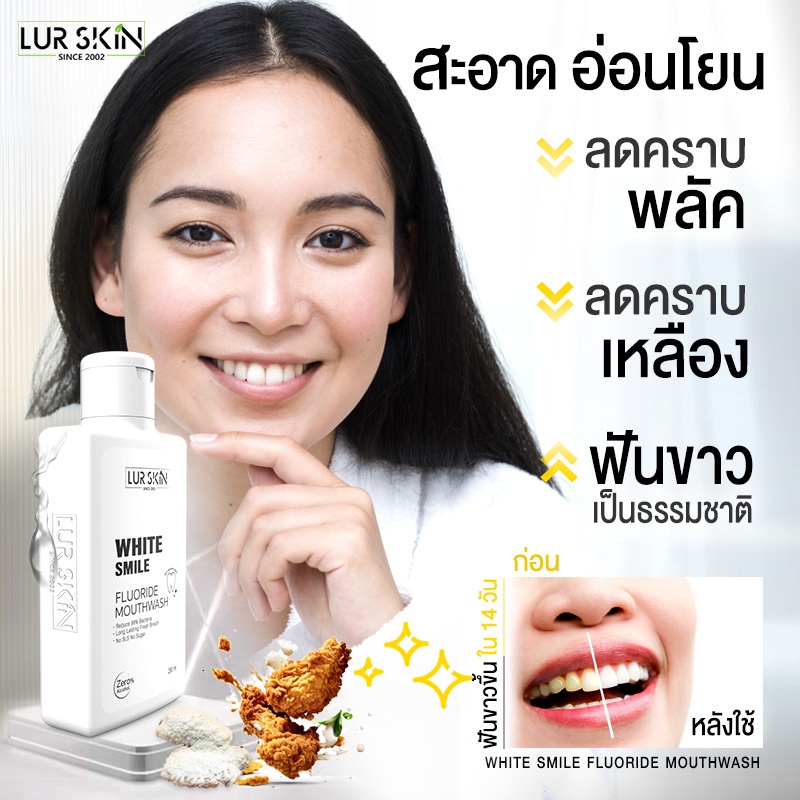 🚛ส่งฟรี ทั้งร้าน🔥 Lur Skin White Smile Fluoride Mouthwash 280ml น้ำยาป้วนปากของเลอสกิน จบทุกปัญหาช่องปากและฟัน (1แถม1)