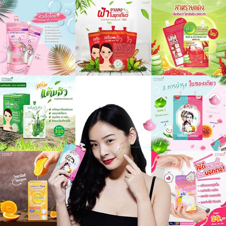 ครีมซอง 12นางพญา เซรั่มวิตซี/เซรั่มแต้มฝ้า/เซรั่มแต้มสิว/เซรั่มไฮยา/กันแดด (ยกกล่อง)